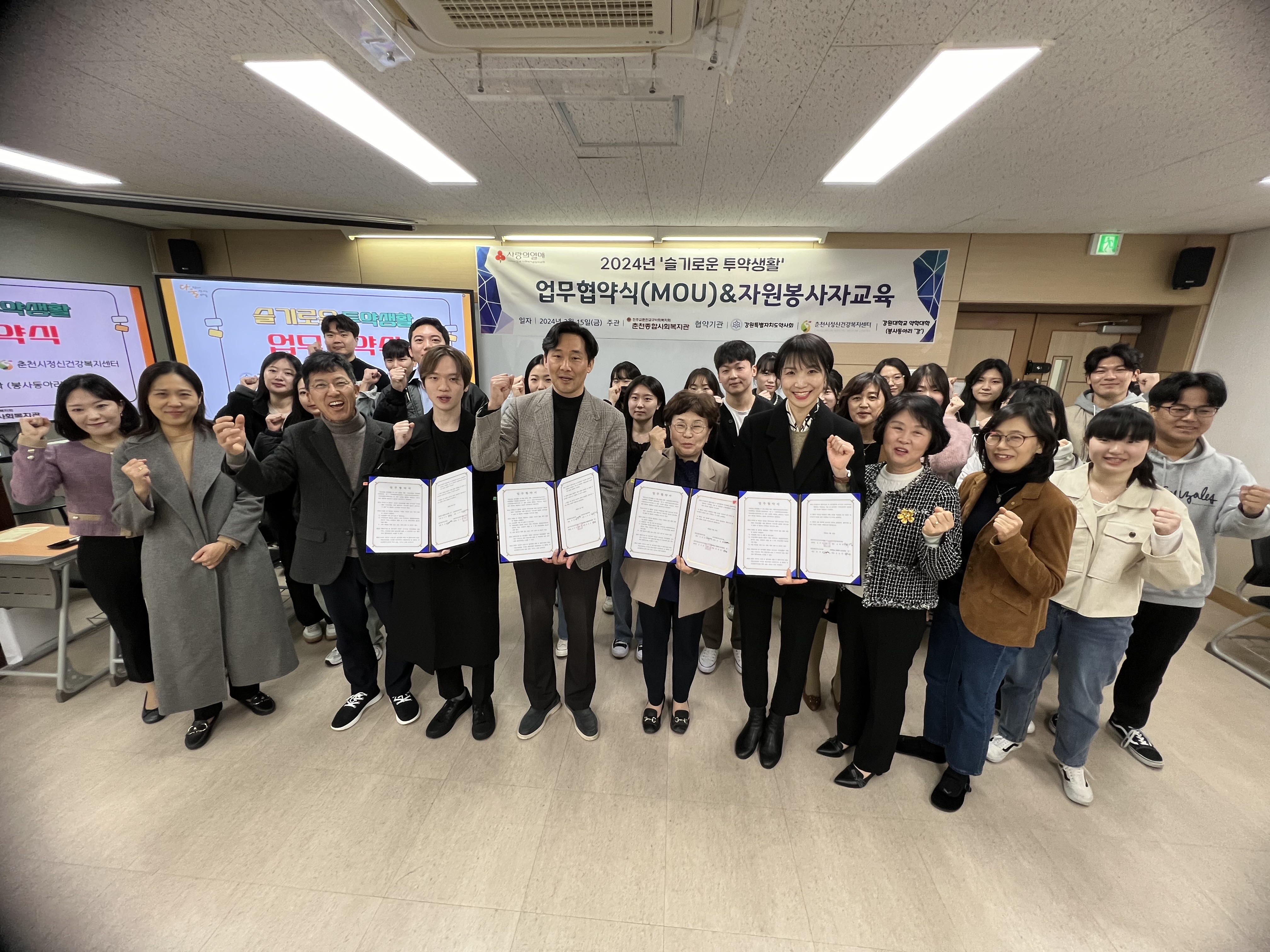 춘천종합사회복지관에서는 지난 3월 15일(금) 강원대학교 약학관 106호에서 ‘슬기로운 투약생활 업무협약식 및 자원봉사자 교육’을 진행하였다. ‘슬기로운 투약생활’ 2024년 강원사회복지공동모금회 지원사업으로 노인 및 정신질환자들의 약물 오·남용을 방지하고 올바른 약물관리를 통해 삶의 질을 향상하기 위한 프로...