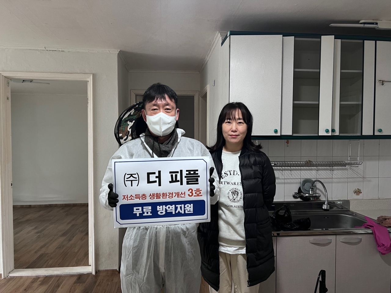 원주시 단구동에 위치한 방역·청소업체 (주)더 피플(이사 신성일)은 원주시 문막읍 관내 저소득 가정을 방문하여 제3호 무료 해충 방역을 실시하였다. (주)더 피플은 '나누미 보드미' 제4호 협약기관으로 지난해부터 문막 관내 저소득 가정에 무료로 방역 봉사를 하고 있다. 이날 직접 방역을 시행한 신성일 이사는 "꾸준한...