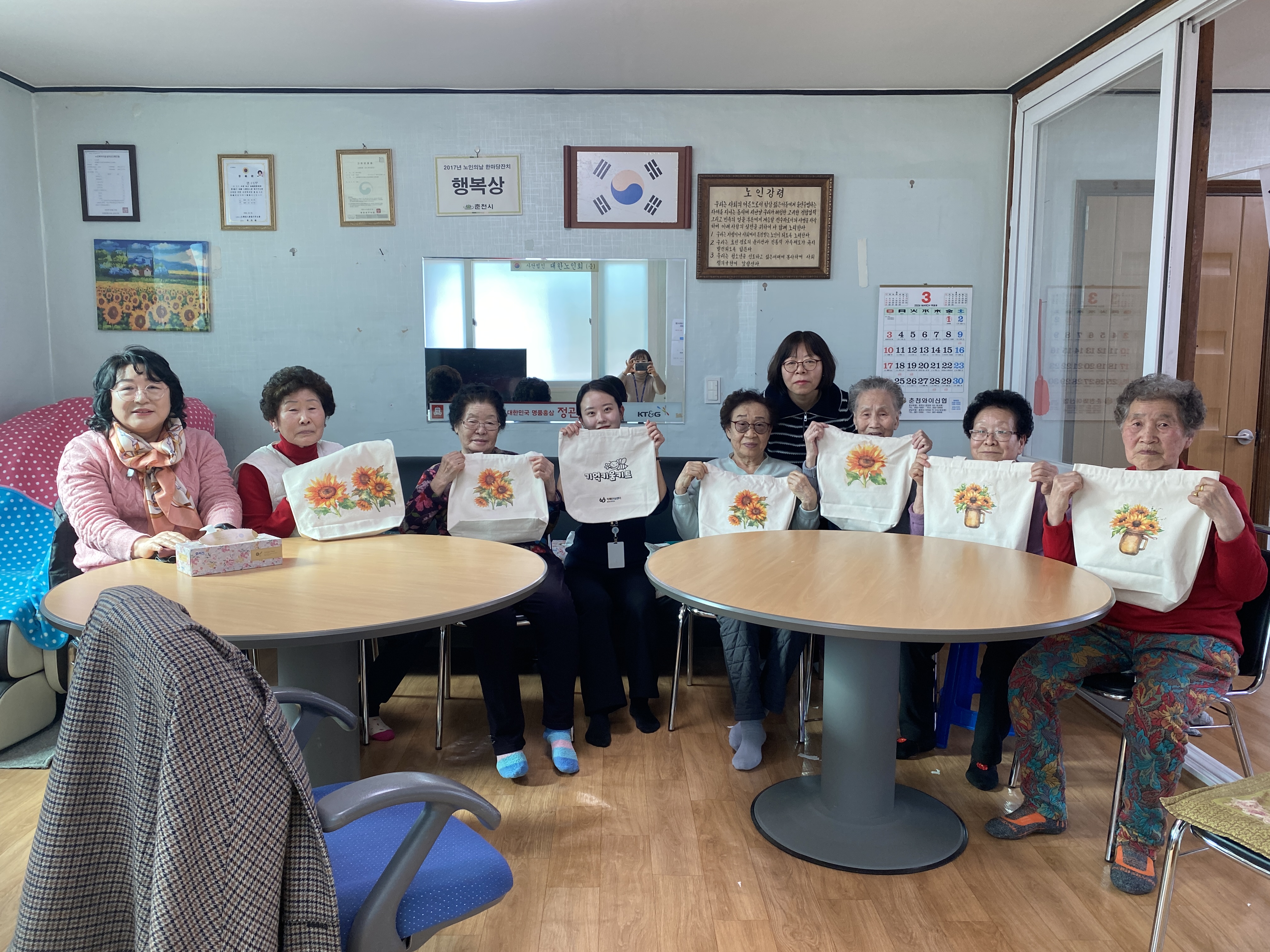 춘천시 조운동 행정복지센터(동장: 최연순)는 지난 3월 8일 조운경로당(회장: 이순자)을 방문해 춘천시 치매안심센터와 함께하는 찾아가는 경로당 건강교실 활동으로 냅킨아트 에코백 만들기를 진행했다.