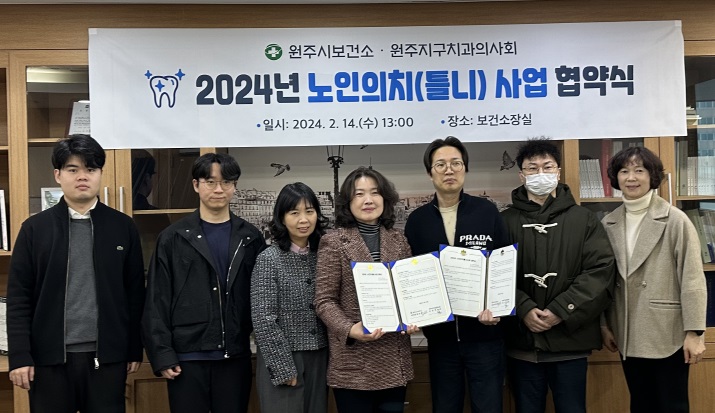 원주지구 치과의사회와 만 65세 이상 저소득층 의치 지원 협력 원주시보건소는 지난 2월 14일 ‘2024년 노인의치(틀니) 사업’의 원활한 추진을 위해 원주지구 치과의사회(회장 최승태)와 업무협약을 체결했다. 이번 협약을 통해 양측은 노인 의치 시술과 장착에 대한 진료 편의 제공, 시술 후 1년간 무료 사후관리, 구강보건...