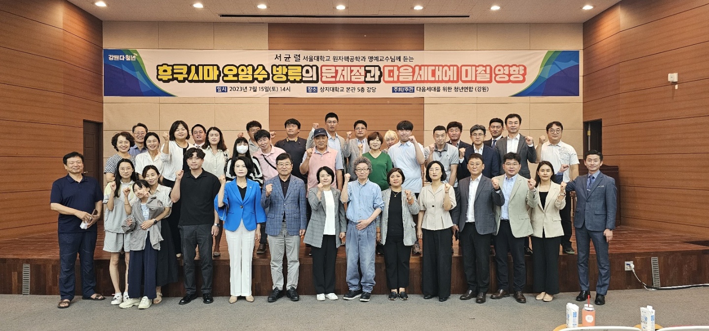 [강원사회복지신문 이정환 기자]=다음 세대를 위한 청년연합(회장 유현수)은 지난 7월 15일 상지대학교 본관 강당에서 서균렬 서울대학교 원자핵공학과 명예교수를 초빙하여 강연회를 진행했다.이번 강연은 약 100여 명의 시민들과 더불어 민주당 전용기 국회의원과 박윤미, 전찬성 강원도의회 의원, 문정환, 권아름, 안정민...