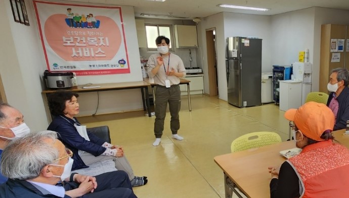 [강원사회복지신문 홍기한 기자]=원주시 반곡관설동(동장 김효중)은 지난 5월 17일 부영1차아파트 경로당을 방문해 '경로당으로 찾아가는 보건복지서비스'를 추진했다. 이날 '반곡관설동 찾아가는 보건복지팀'은 경로당을 방문해 어르신들의 고혈압, 당뇨, 치매 등 만성질환에 대한 건강관리 교육과 개인별 맞춤형 상담을 진...