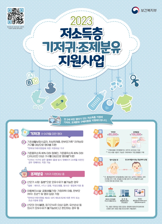 [강원사회복지신문 서은진 기자]=기저귀 월 8만 원, 조제분유 월 10만 원 지원 저소득층 가구의 0~24개월 영아 대상 원주시보건소는 저소득층 가구의 0~24개월 영아를 대상으로 기저귀 및 조제분유를 지원한다고 밝혔다. 기저귀 지원 대상은 기초생활보장, 차상위, 한부모가족 수급 가구를 비롯해 기준 중위소득 80% 이하의 ...