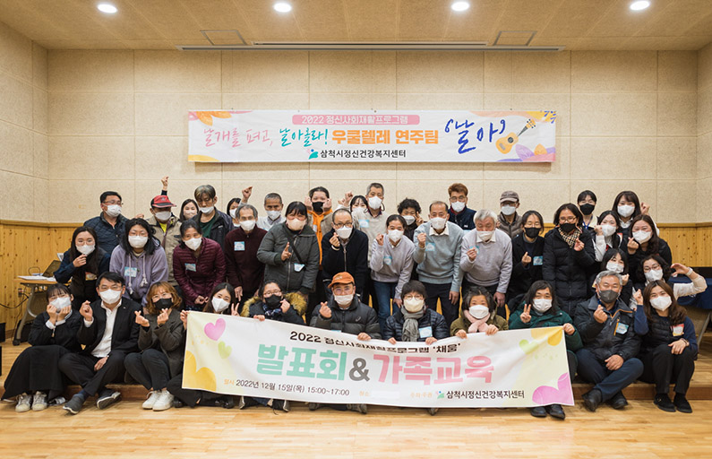 [강원사회복지신문 홍기한 기자]=정신사회재활프로그램 '채움' 발표회에서 미술작품 전시와 우쿨렐레 연주회 진행 정신건강의학과 전문의와 함께하는 정신질환자 가족 대상 교육 진행 삼척시정신건강복지센터는 지난 12월 15일 삼척 활기 치유의 숲에서 정신사회재활프로그램 '채움' 발표회와 가족 교육을 개최하였다. 이번 ...