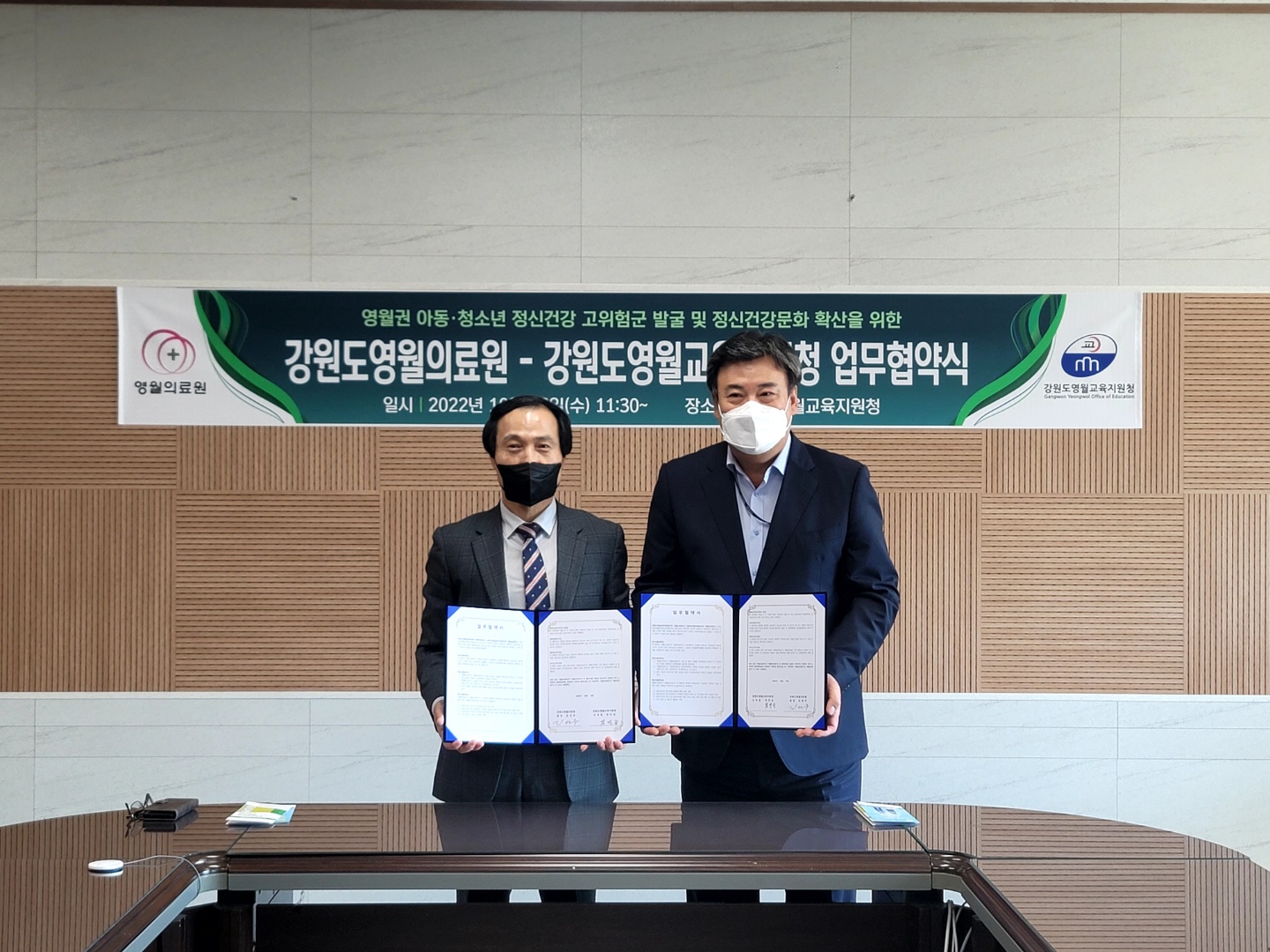 [강원사회복지신문 김도연 기자]=강원도영월의료원(원장 김성우)과 강원도교육지원청(교육장 정민승)은 2022년 10월 19일 강원도영월교육지원청에서 영월권 아동·청소년 정신건강 고위험군 발굴·치료 및 건강한 정신문화 확산을 위한 업무협약을 체결했다. 양기관은 이번 협약을 통해 아동·청소년기에 겪을 수 있는 정신건...