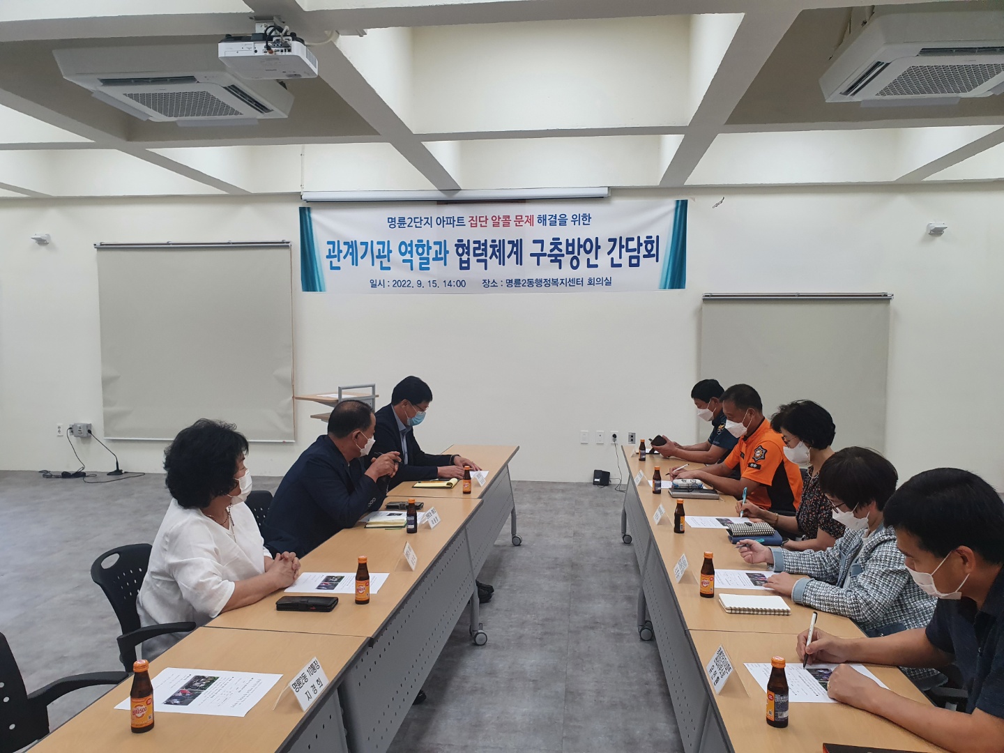 [강원사회복지신문 김도연 기자]=원주시 명륜2동 행정복지센터(동장 김태중)는 지난 9월 15일 임대아파트 입주민의 집단 알콜 문제 해결을 위한 관계기관 간담회를 개최했다. 이번 간담회에는 흥업지구대장, 명륜119안전센터장, 명륜종합사회복지관장, 원주시중독관리통합지원센터장 등 10명이 참석한 가운데 아파트 내 집단...