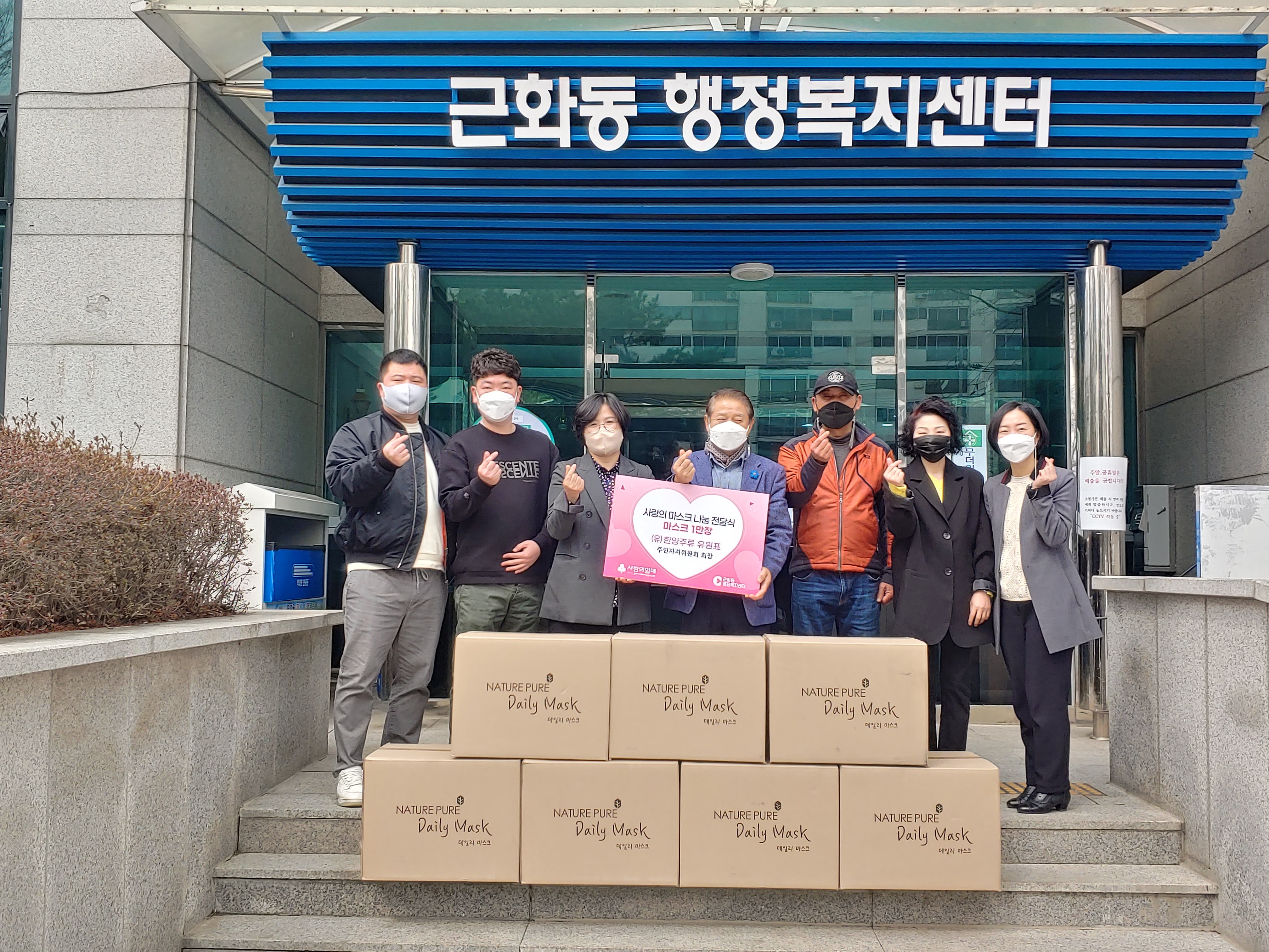 [강원사회복지신문 서은진 기자]=(유)한양주류(대표:유원표)는 지난 3월 25일 코로나19 극복을 위해 마스크 1만장을 춘천시 근화동행정복지센터에 전달했다.
