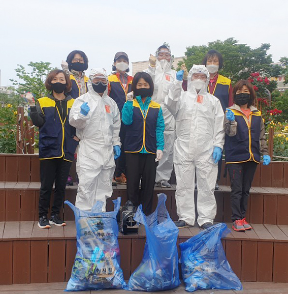 [강원사회복지신문 서은진 기자]=원주시 단계동 통장협의회(회장 조인순)는 지난 6월 5일 장미공원 일대에서 코로나19 마을 방역 봉사와 함께 쓰레기 수거 등 환경정화 활동을 펼쳤다.