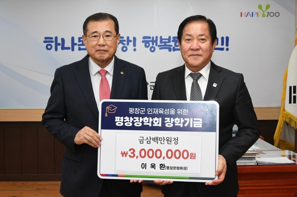 [강원사회복지신문 서은진 기자]=이욱환 평창문화원장은 지난 2월 23일 평창장학회에 장학기금 300만원을 기탁하였다.
