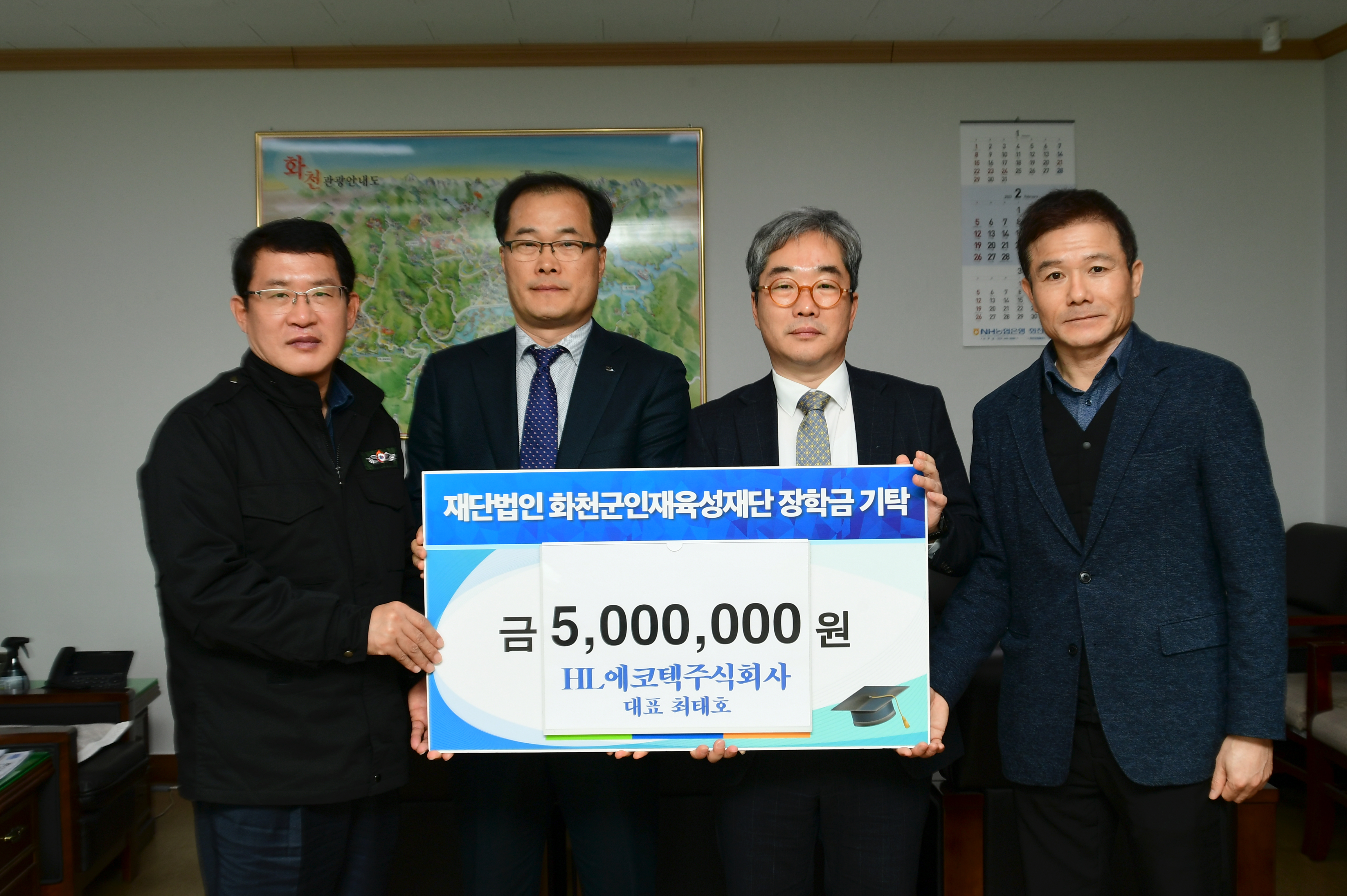 [강원사회복지신문 이정환 기자]=HL 에코텍 주식회사(대표:최태호)는 지난 2월 23일 최명수 화천부군수를 방문해 화천군 인재육성재단 장학금 500만원을 기탁했다.