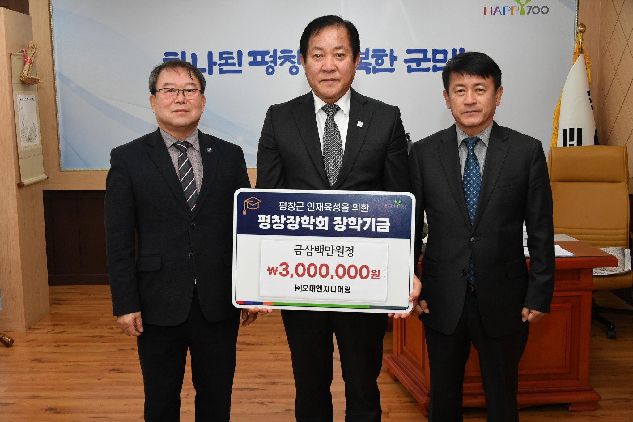[강원사회복지신문 김종한 기자]=(주)오대엔지니어링(대표 김찬수)는 지난 2월 23일 평창장학회에 장학기금 300만원을 기탁하였다.