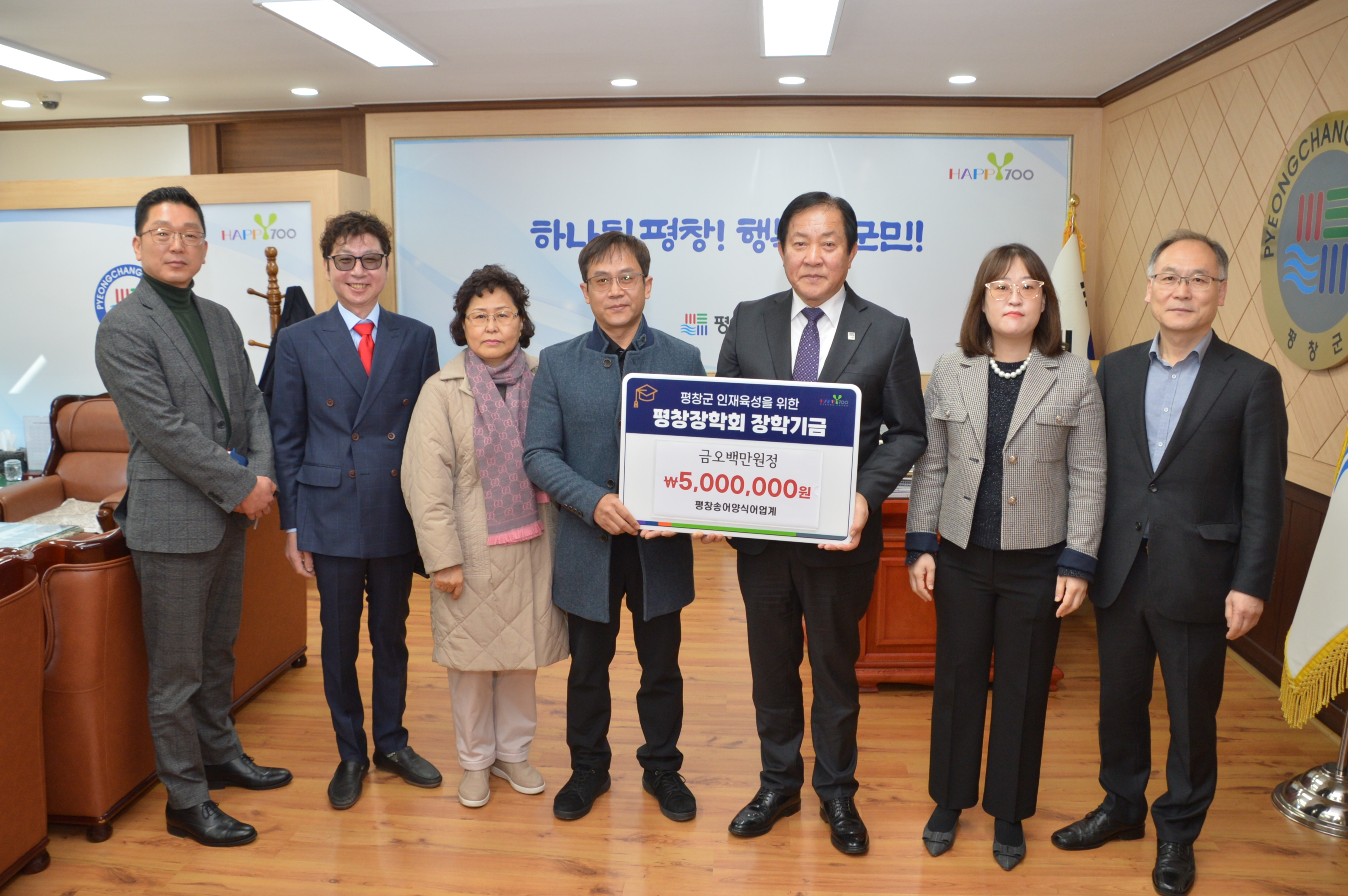 [강원사회복지신문 김종한 기자]=평창송어양식어업계(계장 심경근)는 지난 2월 22일 평창군청을 방문하여 평창장학회에 장학금 5백만원을 기탁하였다. 심경근 계장은 "지역의 학생들이 좋은 환경에서 마음껏 미래를 꿈꿀 수 있도록 보탬이 되고싶다."라고 말했다. 평창장학회 이사장 심재국 평창군수는 "어려운 시기에 지역 ...