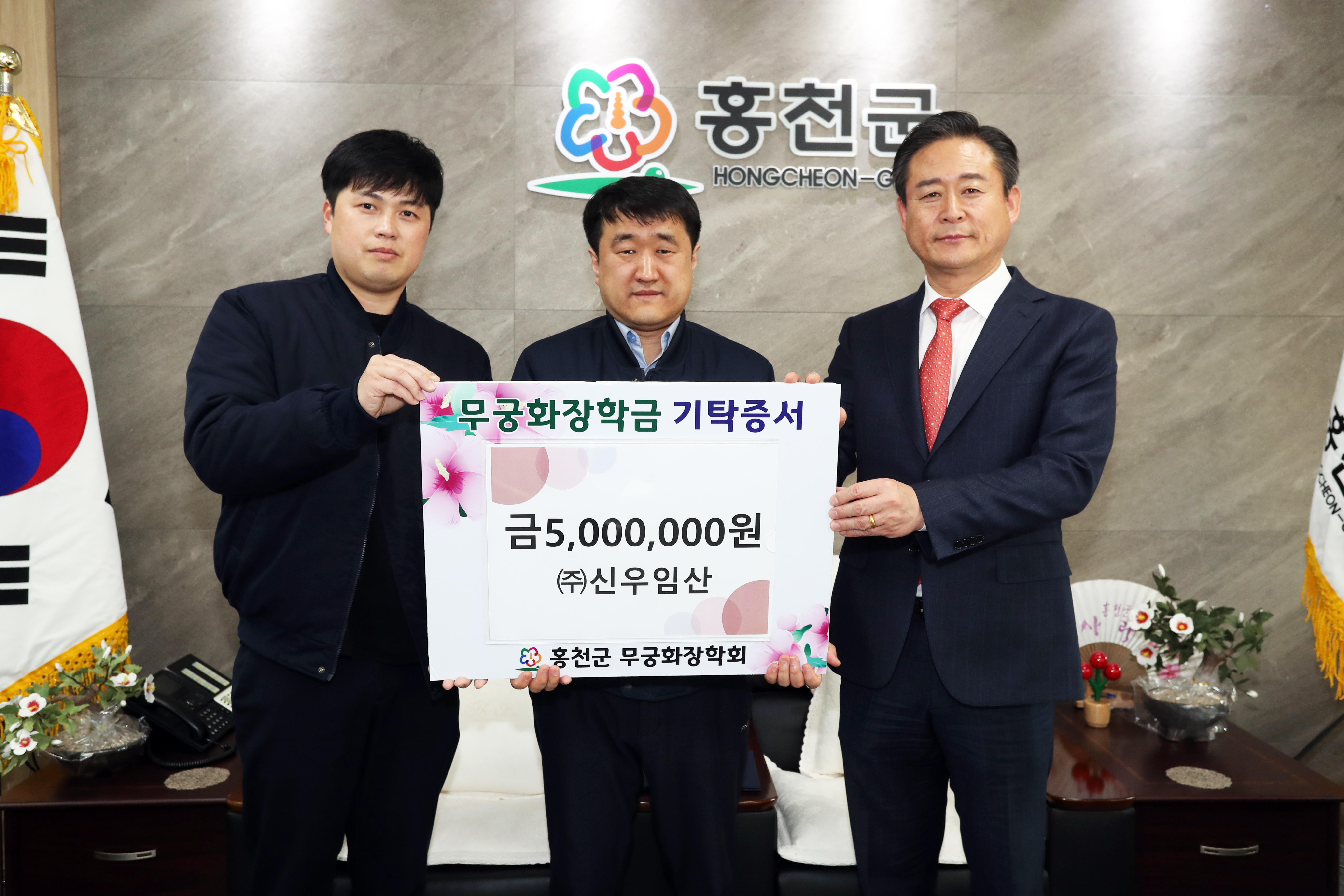 [강원사회복지신문 홍기한 기자]=(주)신우임산(대표 이기세)은 지난 2월 14일 홍천군청을 방문해 인재육성을 위한 무궁화장학금 500만원을 기탁했다.