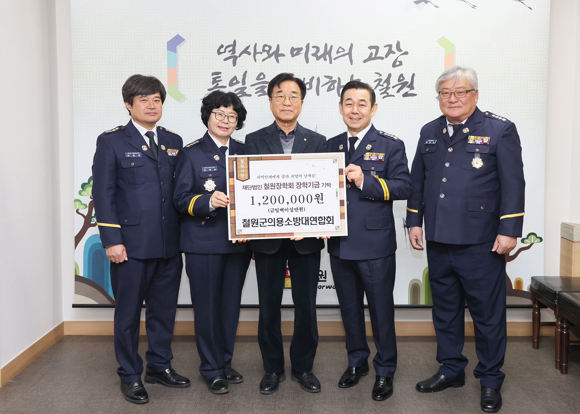 [강원사회복지신문 이정환 기자]=철원군의용소방대연합회(회장 유성규)는 지난 2월 16일 철원장학회에 장학기금 120만원을 기탁했다. 이날 기탁식에는 연합회장 유성규, 여성회장 김해순, 부회장 이동표, 사무처장 이영규가 참석하였으며 안전총괄과장 김영종이 배석했다.