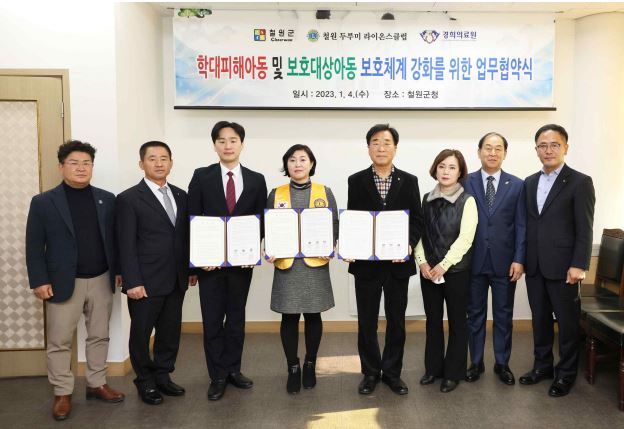 [강원사회복지신문 김도연 기자]=철원군(군수 이현종)은 학대피해아동 및 보호대상아동의 보호체계 강화를 위해 지난 1월 4일 국제라이온스협회354-E(강원)지구 철원두루미라이온스클럽, 경희의료원과 업무 협약을 체결했다고 밝혔다. 이번 협약에 따라 철원군은 치료가 필요한 아동을 적극 발굴하여 의료서비스를 연계하고,...