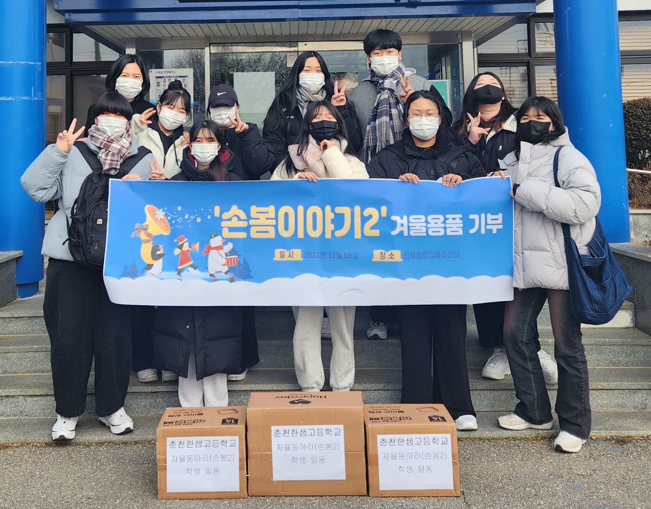 [강원사회복지신문 김도연 기자]=춘천 한샘고등학교 동아리 '손봄이야기2'(지도교사:정민영) 학생 백가연 외 13명은 춘천시 신북읍 행정복지센터에서 프리마켓 행사 운영 수익금 28만 원으로 구입한 방한용품(핫팩) 3상자를 관내 독거노인을 위해 기부했다.