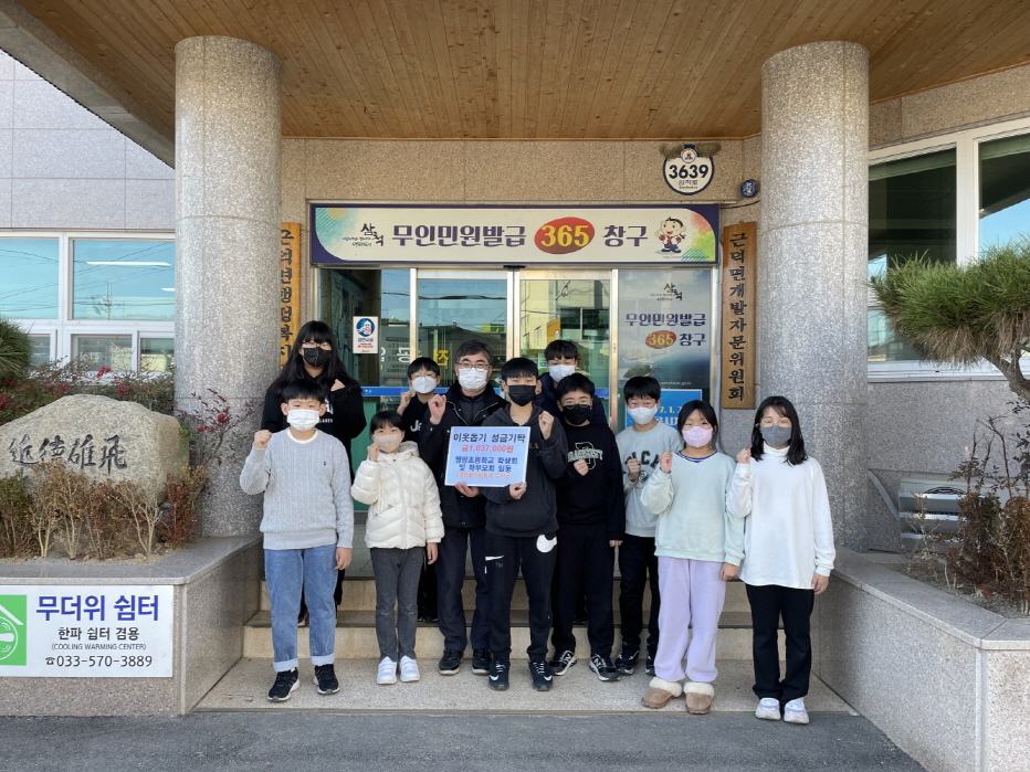 [강원사회복지신문 김종한 기자]=삼척 맹방초등학교 학생회 및 학부모회는 맹방초등학교 교내 축제에서 진행한 나눔장터에서 발생한 수익금 1,037,000원을 지난 12월 8일 근덕면 행정복지센터에 기탁했다. 후원금은 맹방솔바람 축제에서 학생들의 아나바다 알뜰장터와 학부모의 먹거리장터를 통해 마련하였으며 학생들 스스로...