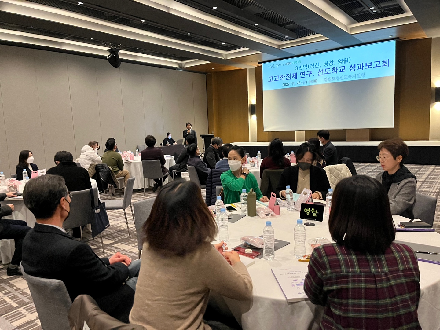 [강원사회복지신문 김도연 기자]=강원도정선교육지원청(교육장 김근익)은 지난 11월 25일(금) 3권역(정선, 평창, 영월) 일반고등학교(16교) 고교학점제 연구·선도학교 성과 보고회를 개최하였다. 정선교육지원청에서는 3권역(정선, 평창, 영월) 거점 교육지원청 센터 역할을 담당하며, 일반고 16교 중 연구학교 1교(사북고)...