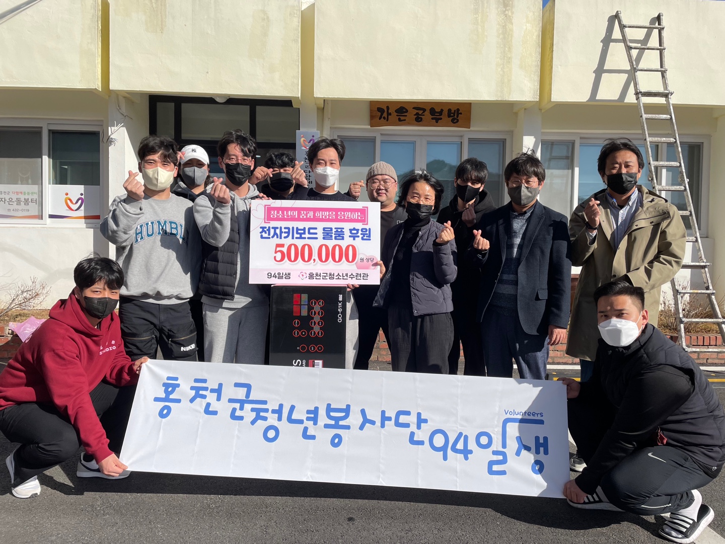 [강원사회복지신문 홍기한 기자]=홍천지역 출신 1994년생 청년들로 결성된 단체인 '94일생'은 지난 11월 26일(토) 13시에 홍천군청소년수련관이 위탁 운영 중인 자은공부방에 50만원 상당의 전자키보드를 지원하고, 창고 정리 봉사활동을 진행했다. '94일생'은 2020년에 1994년생 동갑내기 친구들이 지역에서 뜻깊고 의미 있...