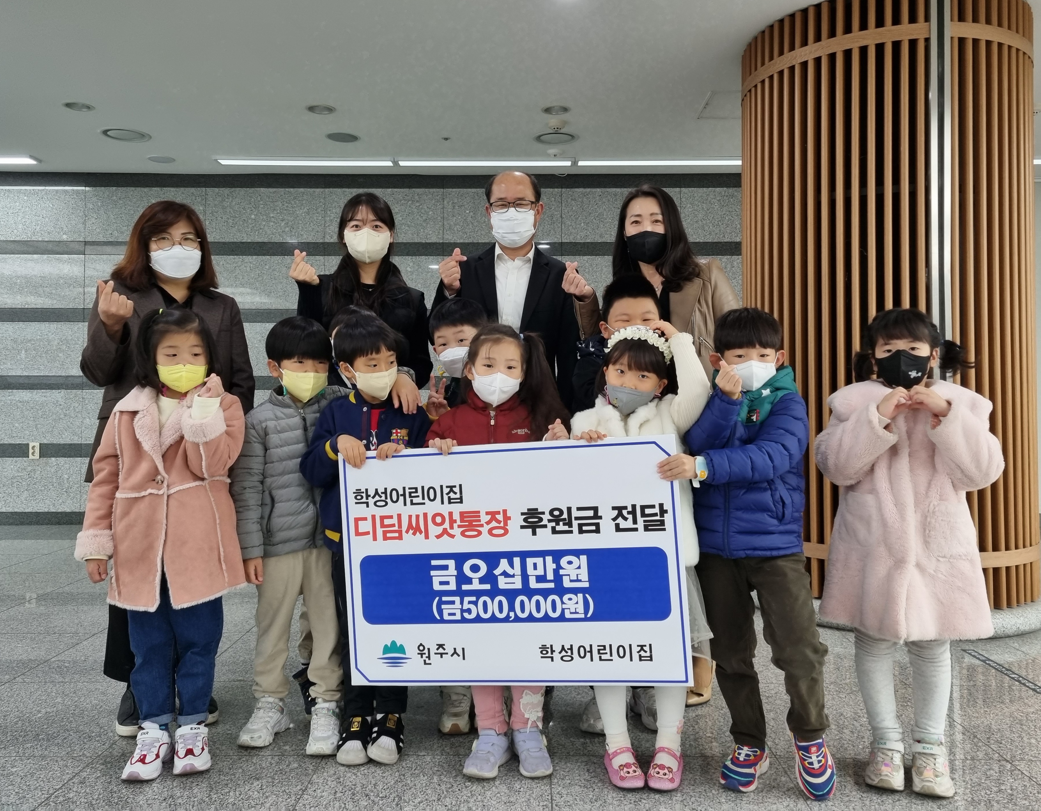 [강원사회복지신문 서은진 기자]=원주 학성어린이집(원장 임주실)은 지난 11월 24일 원주시청 시민복지국장실에서 디딤씨앗통장 적립 후원금 50만 원을 전달했다. 학성어린이집의 활동 수익금으로 마련된 이번 후원금은 아동권리보장원을 통해 경제적으로 어려운 기초생활수급자와 요보호아동 50명에게 1인당 1만 원씩 지원될...