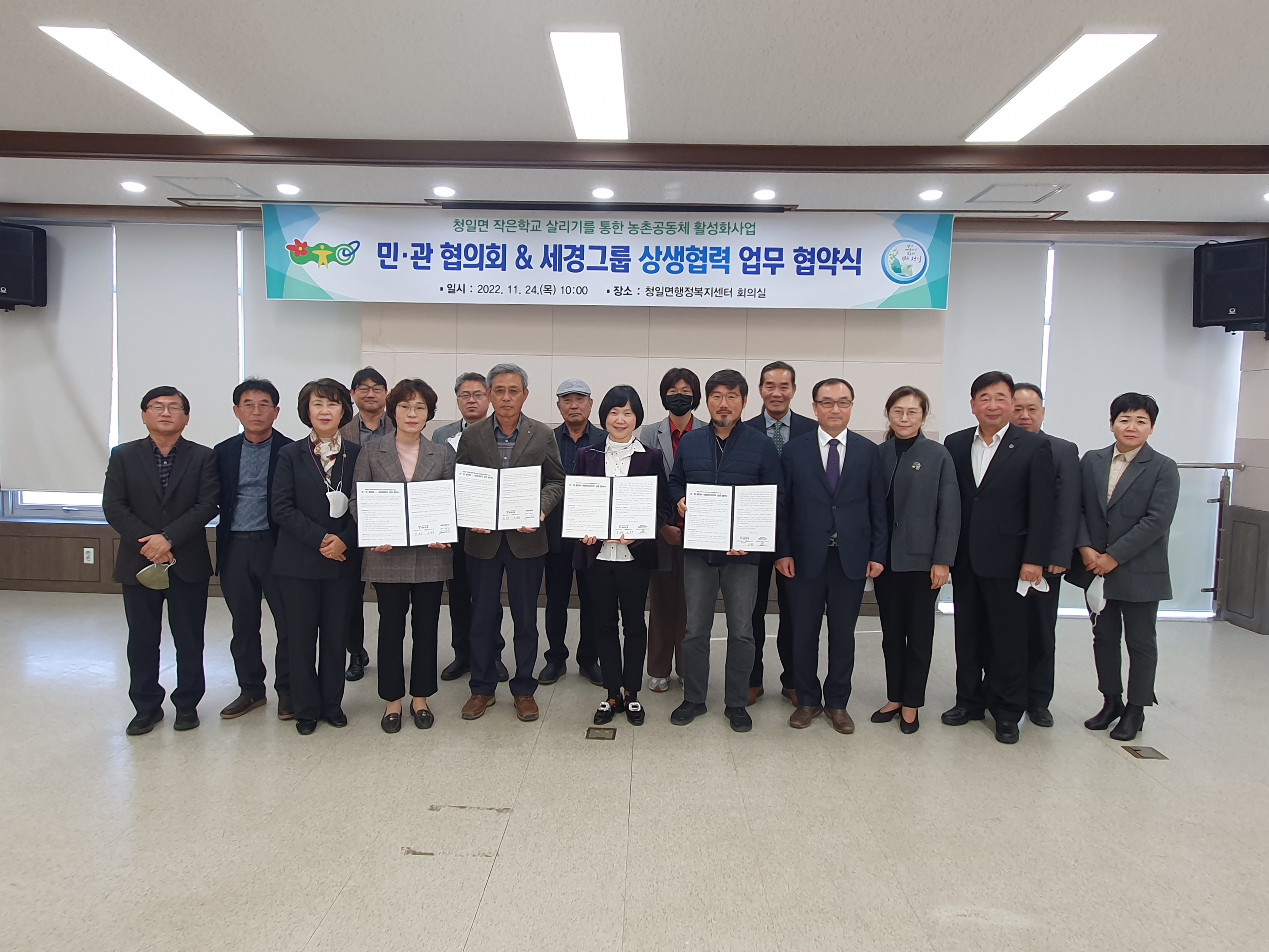 [강원사회복지신문 홍기한 기자]=횡성군 청일면 작은학교살리기 민·관협의회(회장 차희수)는 지난 11월 24일(목) 오전 10시 횡성군 청일면복지센터 회의실에서 세경그룹 내 세경바이오(주)·세경대학교와 상생협력을 위한 업무 협약을 체결하였다. 1957년 삼화건설로 시작하여 세경건설, 세경산업, 석미건설, 세경대학교 등...