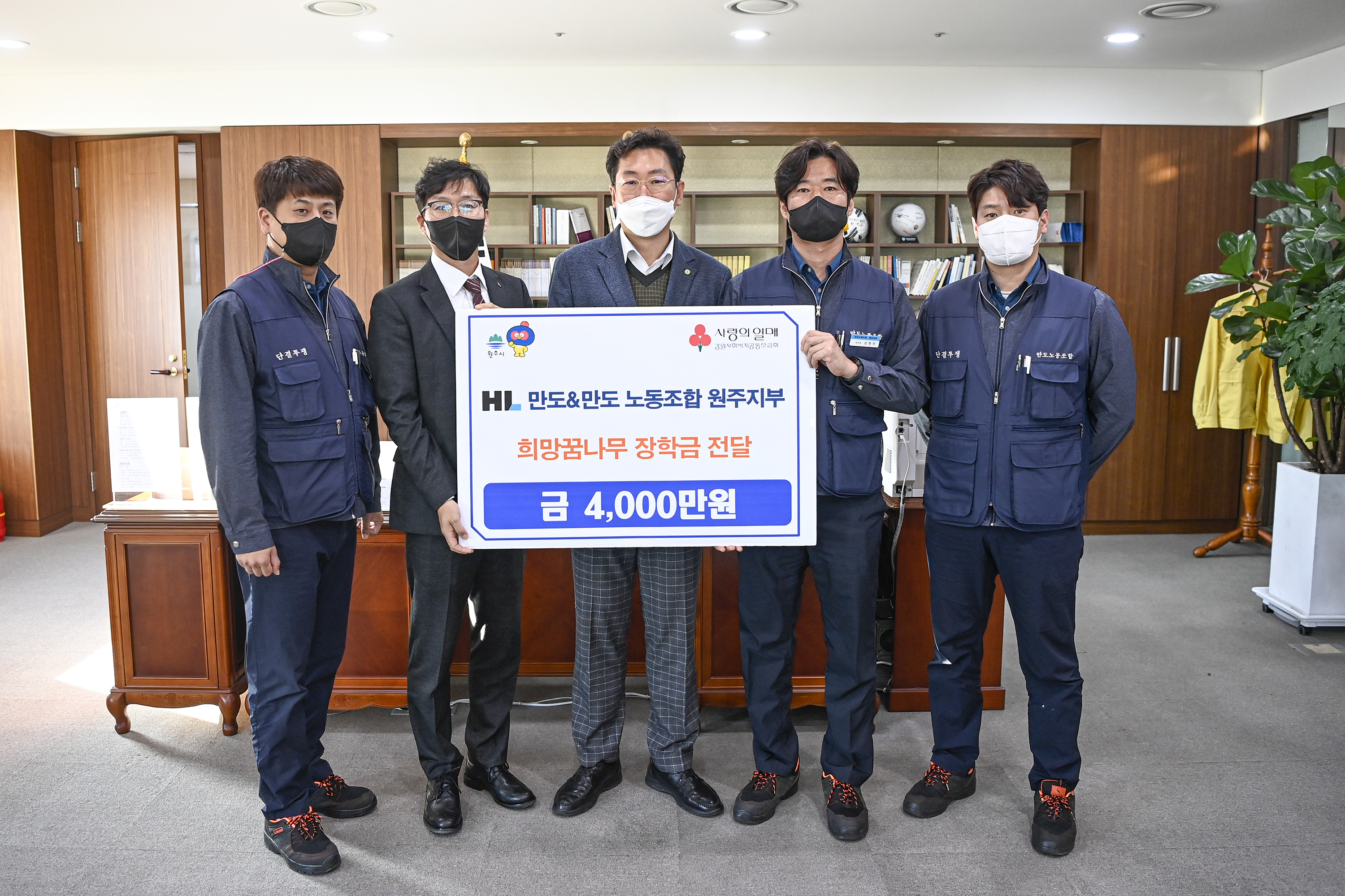 [강원사회복지신문 서은진 기자]=HL만도 원주공장과 HL만도노동조합 원주지부는 지난 10월 17일 원주시청 시장 집무실에서 '제9회 희망꿈나무 장학금' 4,000만 원을 기부했다. HL만도 원주공장과 HL만도노동조합 원주지부는 지난 2014년 원주시와 희망꿈나무 후원 협약을 맺고 매년 장학금을 지원하고 있다. 장학금은 원주시...