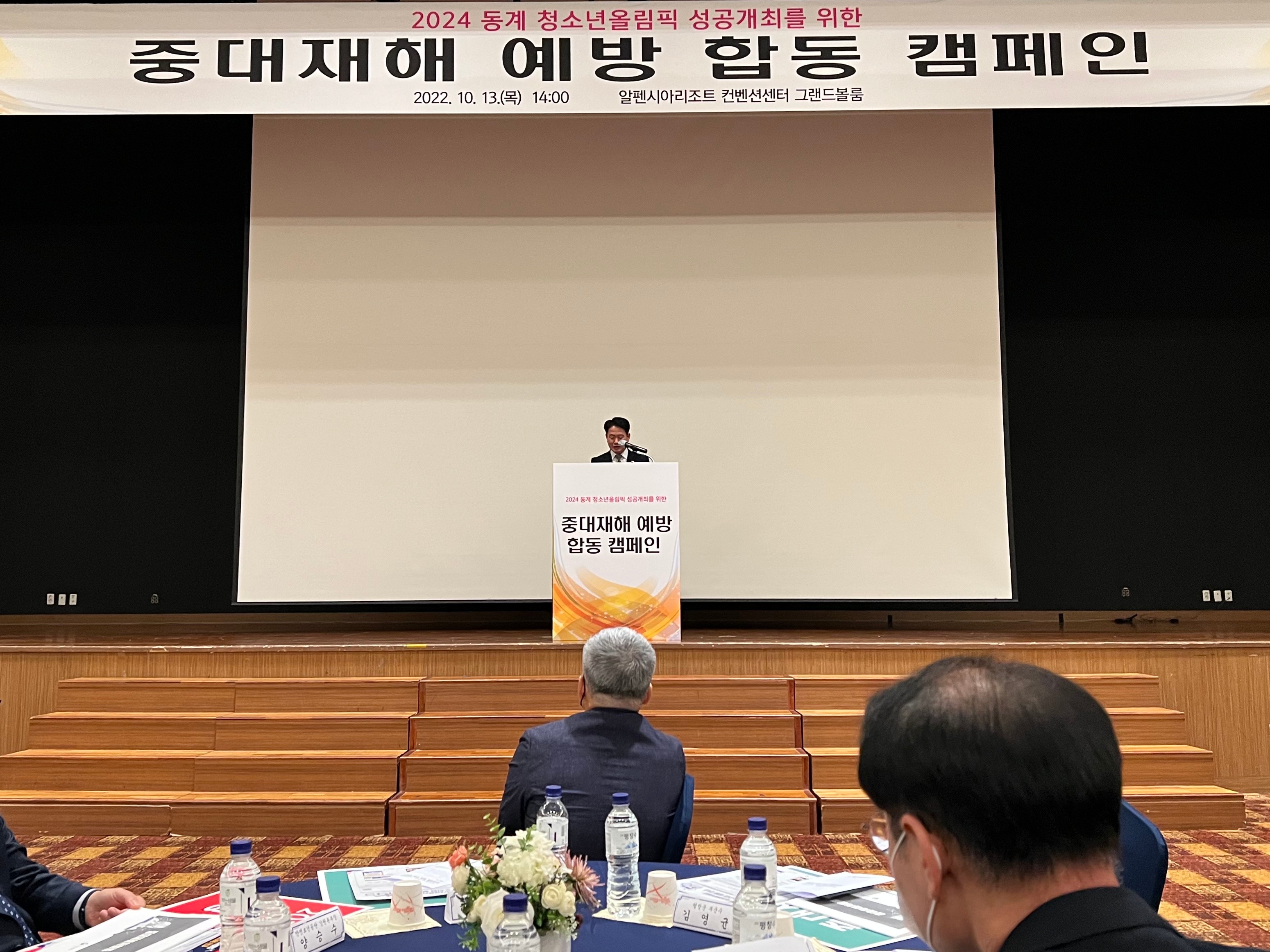 [강원사회복지신문 이정환 기자]=김영균 평창부군수는 지난 10월 13일 오후 알펜시아 컨벤션센터에서 열린 '2024강원동계청소년올림픽' 성공개최를 위한 중대재해 예방 합동 캠페인에 참석했다. 이날 캠페인은 김명선 강원도 행정부지사 주재로 강원동계청소년올림픽조직위, 고용노동부(강원지청), 안전보건공단(강원본부), ...
