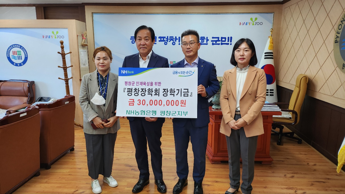 [강원사회복지신문 서은진 기자]=NH농협은행 평창군지부(지부장 최창순)는 지난 10월 12일 평창군청을 방문하여 평창장학회에 장학금 3천만 원을 기탁했다. 최창순 지부장은 "지역기업으로서 의미 있는 일을 찾다가 지역의 학생들이 더 좋은 환경에서 본인의 꿈을 이룰 수 있길 바라는 마음에서 기탁을 했다."며 "학생들이 훌...