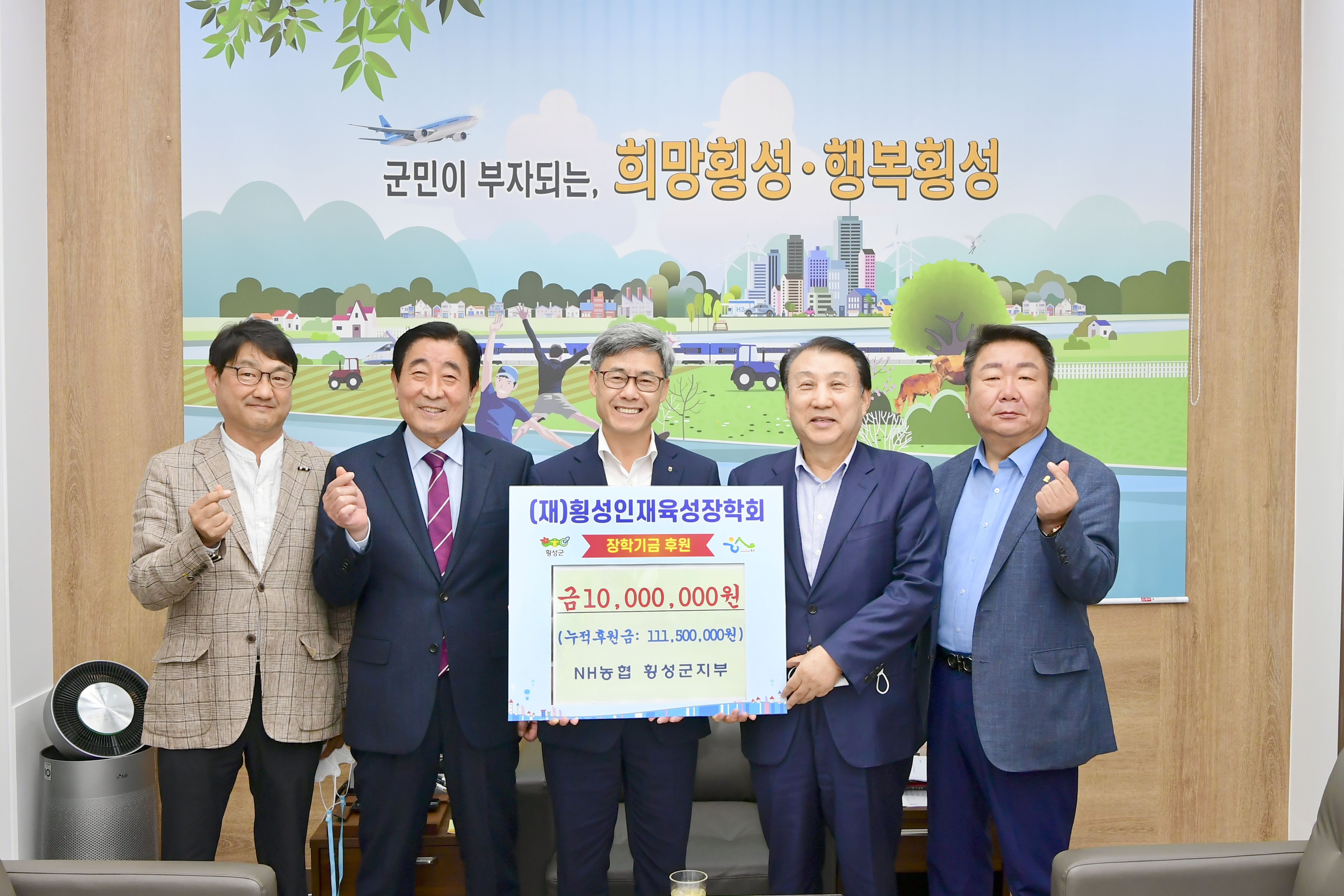 [강원사회복지신문 홍기한 기자]=지난 10월 6일 오후 3시 군수 집무실에서 NH농협 횡성군지부(지부장 조경희), 상이군경회 횡성군지회(회장 심재원)의 횡성인재육성장학금 기탁식이 열렸다. NH농협 횡성군지부 상이군경회 횡성군지회 지역인재 육성을 위해 (재)횡성인재육성장학회에 NH농협 횡성군지부에서는 장학금 1천만원...