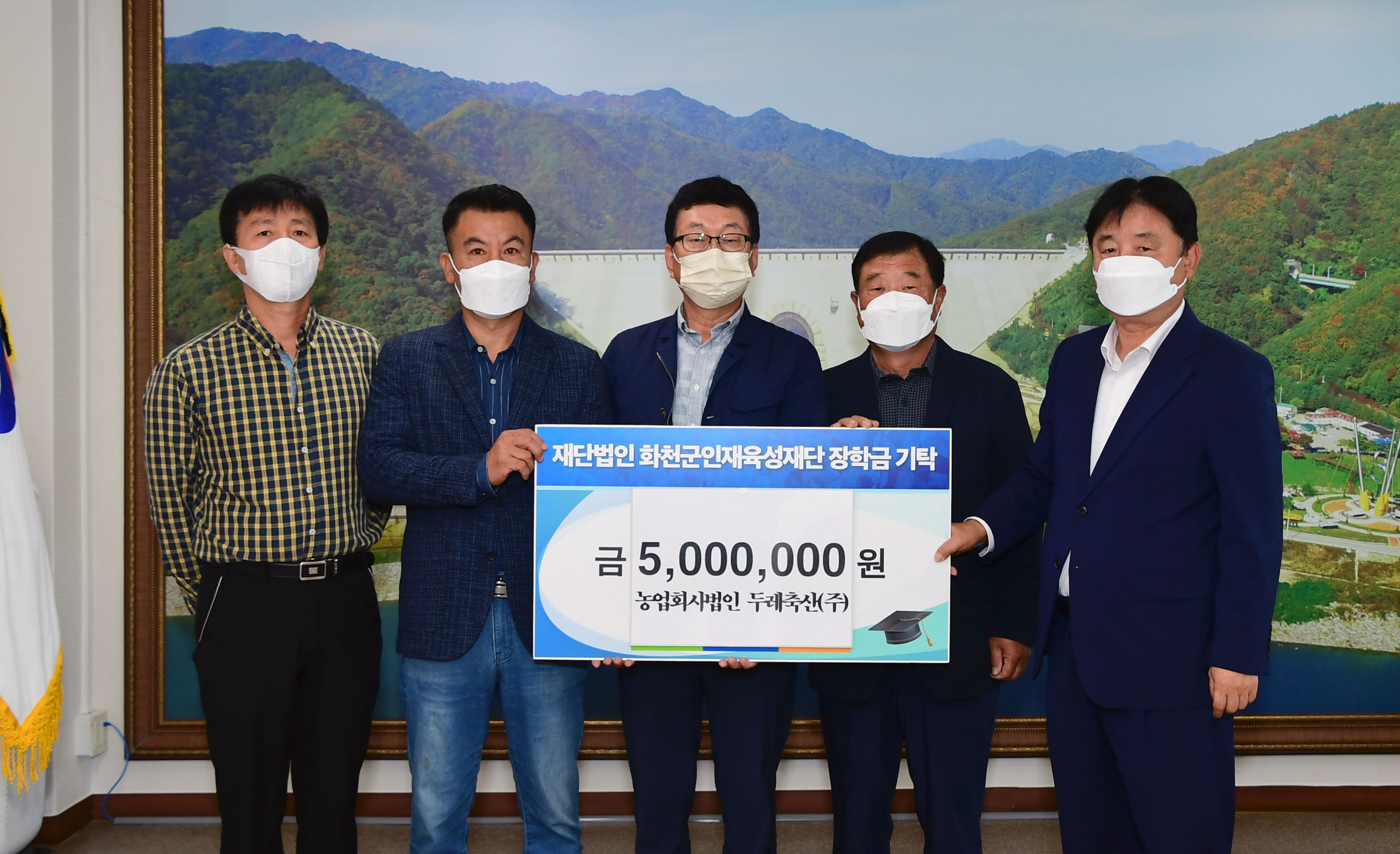 [강원사회복지신문 김도연 기자]=농업회사법인 두레축산(대표:김영관)은 지난 9월 22일 최문순 화천군 인재육성재단 이사장에게 장학금 500만원을 기탁했다.