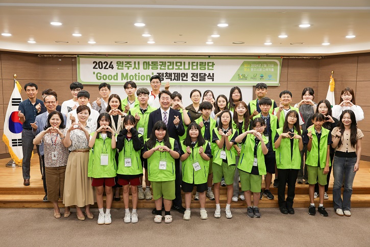 아동청소년의 심리정서적 어려움 해소 요구 등 8개 정책안 전달 원주시와 굿네이버스는 지난 7월 15일 원주시청 지하1층 다목적홀에서 ‘2024년 원주시 아동권리모니터링단 정책제언 전달식’을 진행하였다. 이날 원주시장을 비롯하여 굿네이버스 강원서부지부 박미경 대표, 김혁성·권아름 원주시의회 의원, 아동권리모니터...