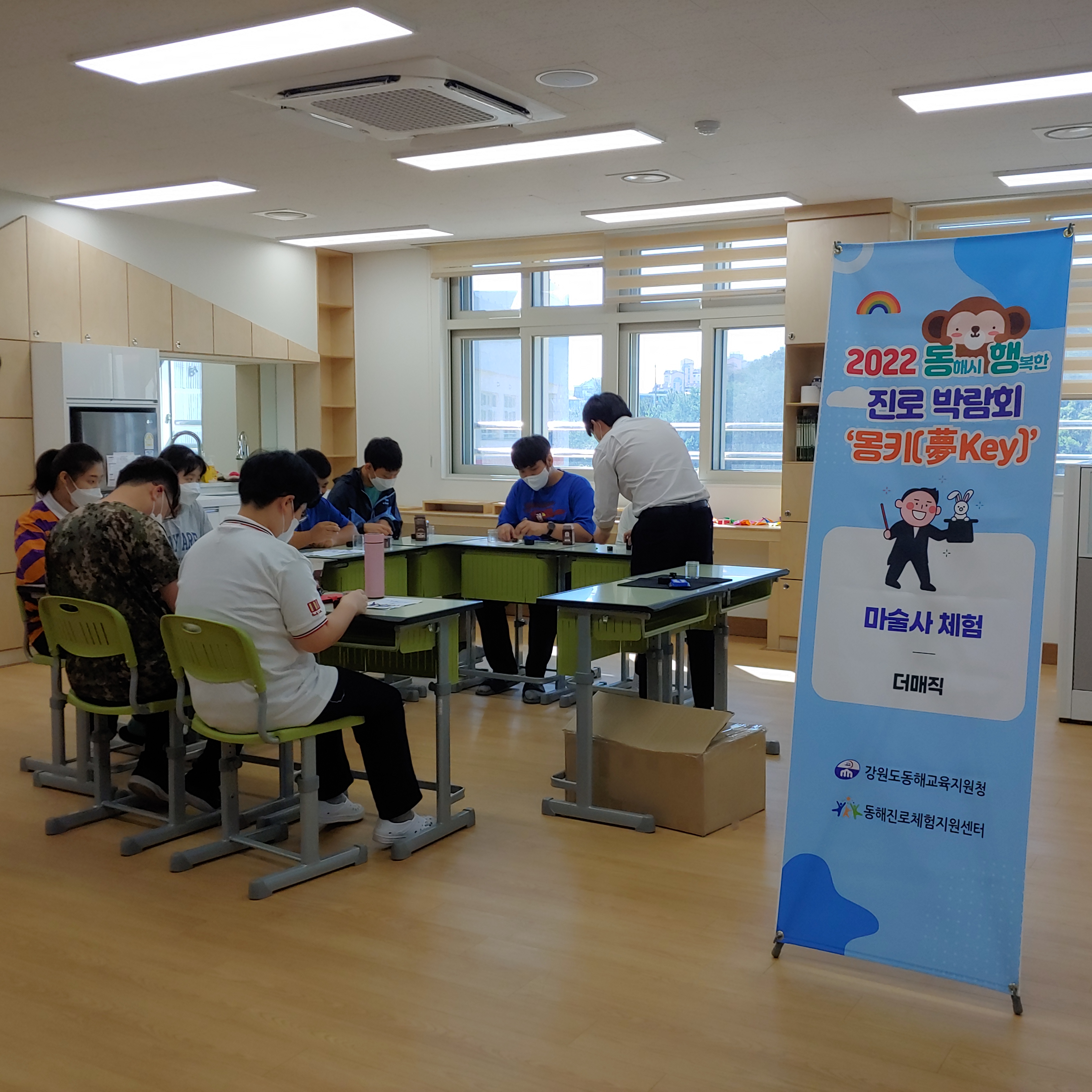 [강원사회복지신문 김종한 기자]=진로체험을 통한 교육 격차 해소 동해교육지원청과 동해진로체험지원센터가 주관한 2022년 진로 박람회 '몽키(夢Key)'가 지난 9월 7일(수) 동해해솔학교에서 진행됐다. 이번 행사를 통해 교육격차 해소 및 균등한 진로 교육 기회를 제공해 진로 탐색과 직업 선택에 다소 불리한 여건을 완화하...
