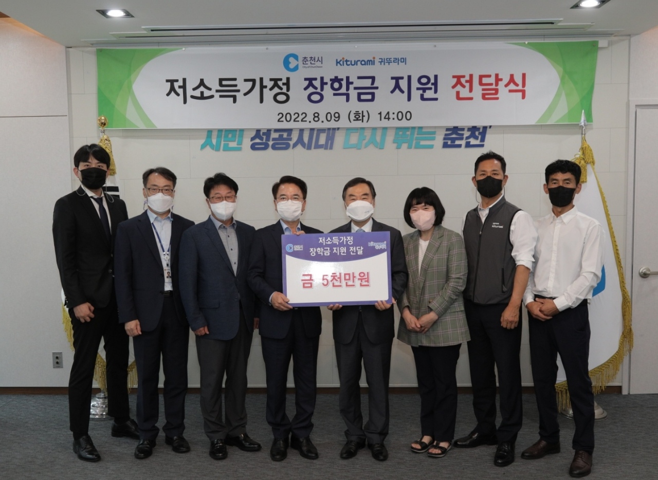 [강원사회복지신문 서은진 기자]=춘천시와 귀뚜라미그룹(회장:최진민)은 춘천시청 시장 접견실에서 춘천시 저소득층 가정 학생을 위한 장학금 지원 전달식을 진행했다. 전달식에는 최재범 (주)귀뚜라미 대표이사, 방혜정 본부장, 정길현 강원지사장 등이 참석했다. 장학금 5,000만원은 읍면동 행정복지센터로부터 추천받은 지...