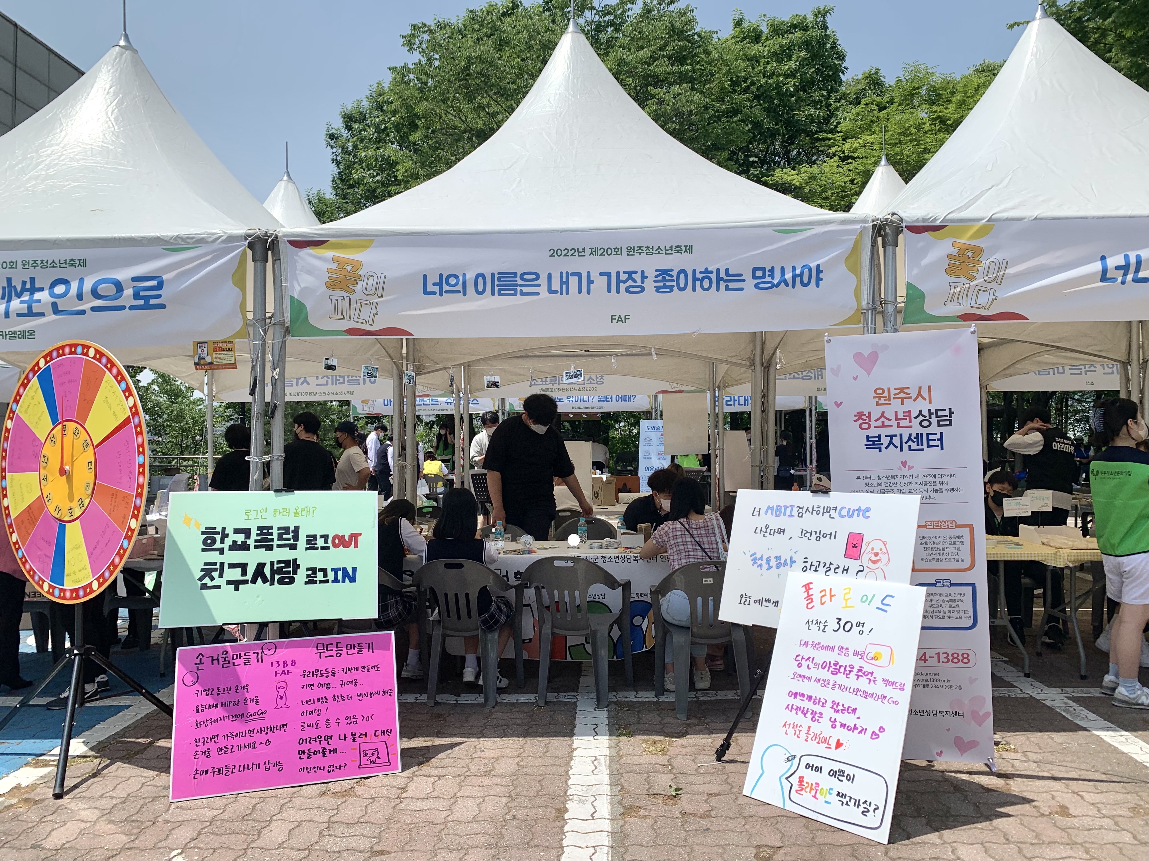 [강원사회복지신문 서은진 기자]=원주시청소년상담복지센터(센터장 진혜숙)에서는 지난 5월 28일(토)~5월 29일(일) 오전 10시부터 오후 5시까지 청소년수련관 일대에서 위기청소년 발굴 및 센터 홍보를 위한 다양한 활동과 프로그램을 진행하였다. 올해는 '학교폭력 로그OUT, 친구사랑 로그IN'을 모토로 진혜숙 원주시청소년...