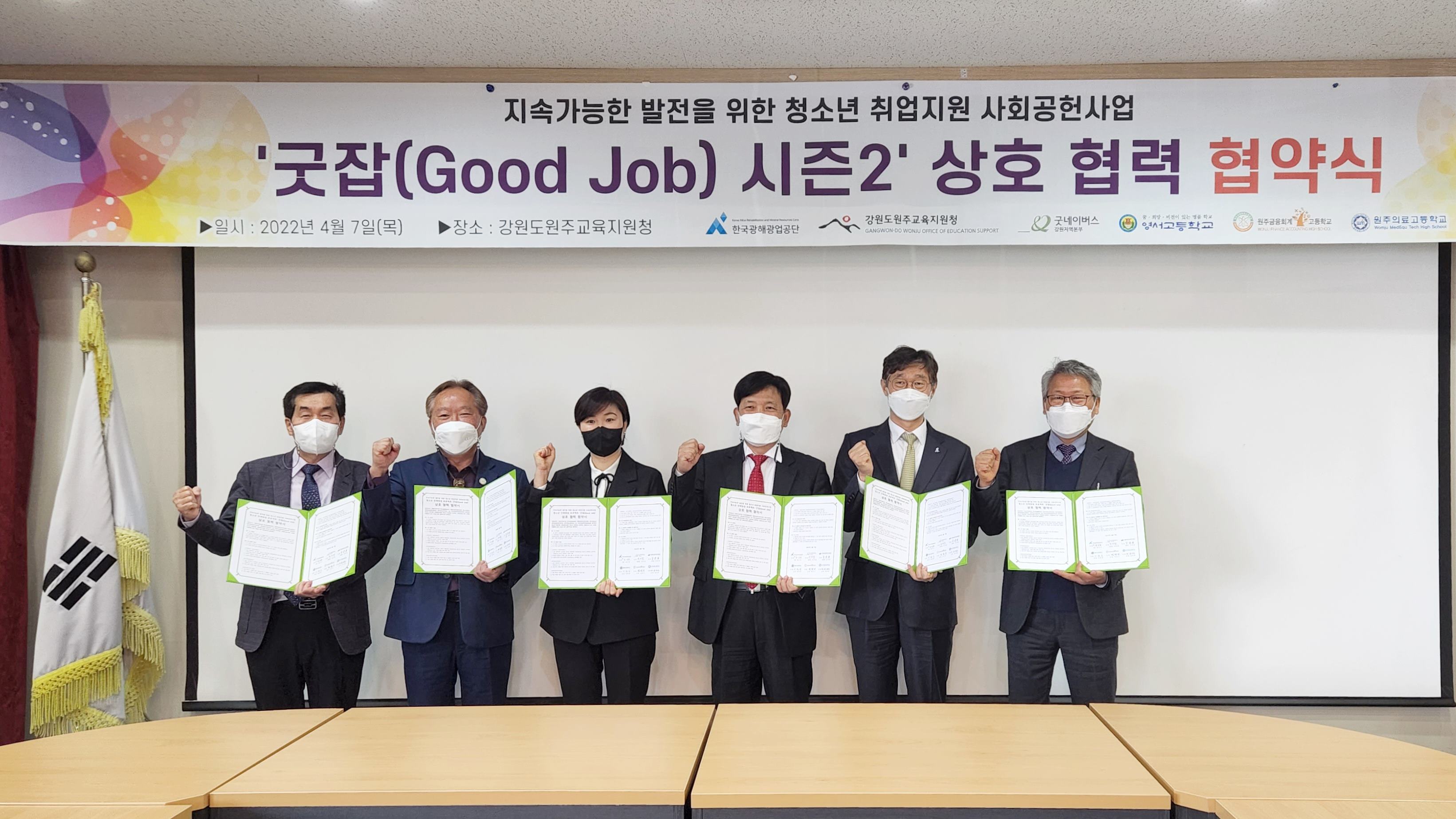 [강원사회복지신문 서은진 기자]=양질의 취업교육 및 미래 진로의 사회적 가치 경험·나눔 위한 청소년 취업지원 사회공헌사업 '굿잡(Good Job)' 실시 굿네이버스 강원지역본부(본부장 박미경)는 한국광해광업공단(사장 황규연), 강원도원주교육지원청(교육장 김춘형) 및 협력학교 3개교(영서고등학교, 원주금융회계고등학교...