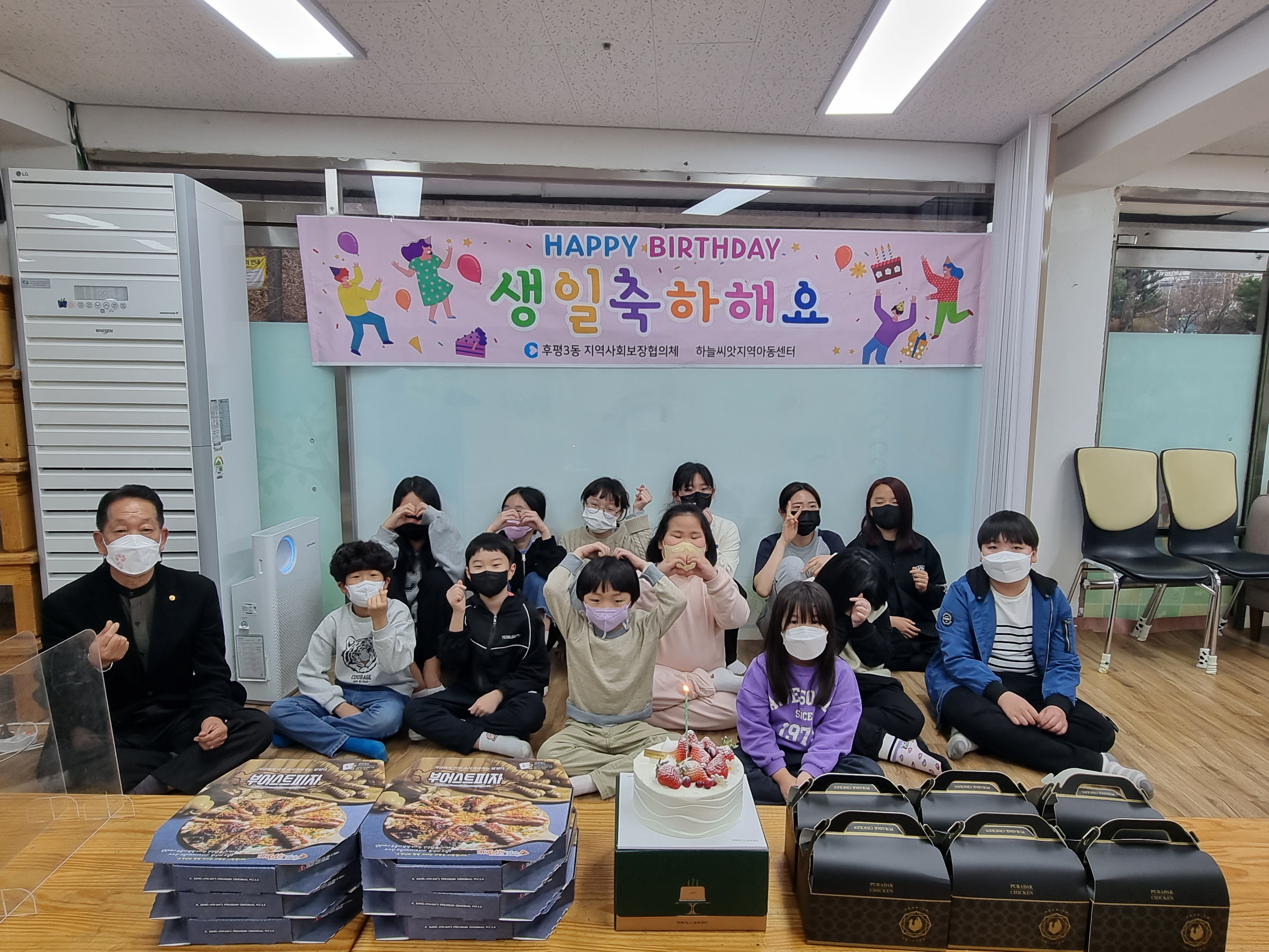 [강원사회복지신문 김종한 기자]=춘천시 후평3동 지역사회보장협의체(위원장:연제철)는 지난 3월 30일과 31일 이틀간 관내 지역아동센터 2개소의 아동들에게 생일파티를 진행했다. 이번 사업은 (주)춘천케미컬, 지청헤어살롱, 샐러디후평점, 프라닭후평점, 지정환피자후평점에서 후원했다.