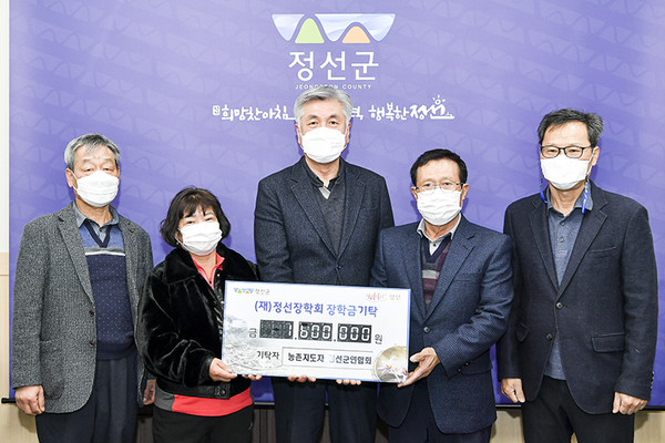 [강원사회복지신문 이정환 기자]=한국농촌지도자정선군연합회(회장 한규섭)는 지난 2월 16일 정선장학회에 지역인재 육성을 위해 써달라며 장학금 160만원을 기탁했다.