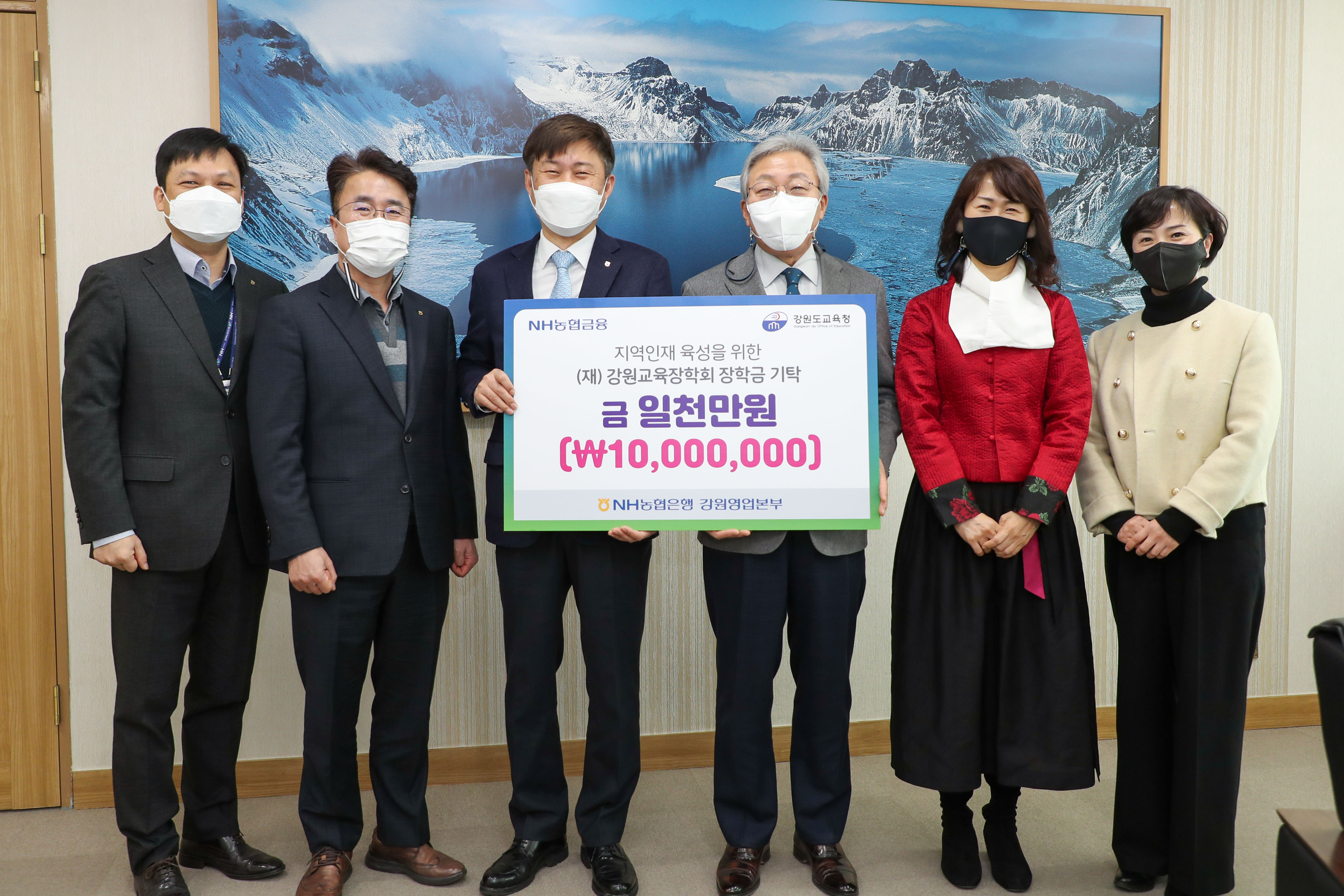 [강원사회복지신문 서은진 기자]=NH농협은행 강원영업본부, 지역 인재 육성을 위한 장학금 지원 강원도교육청은 지난 1월 28일(금), 농협은행(강원영업본부)로부터 강원도 지역 인재 육성을 위한 장학금 1천만원을 기탁받았다고 전했다. 전달된 기탁금은 강원교육장학회 지원 절차에 따라 강원도 내 학생들에게 장학금으로 지...