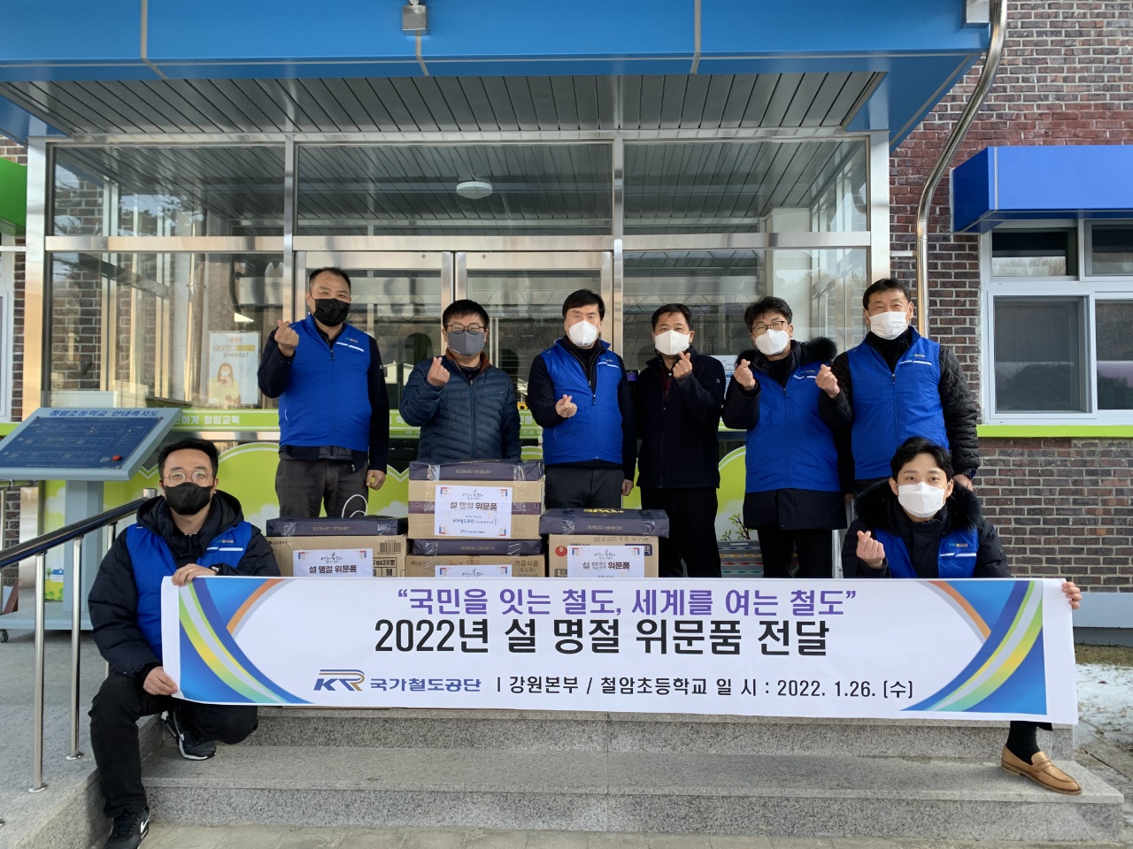 [강원사회복지신문 서은진 기자]=국가철도공단 강원본부 시설관리처(처장 김태희)는 지난 1월 26일(수), 2022년 설 명절 위문품(생필품)을 태백시 철암초등학교(교감 정의남)에 전달했다. 이날 전달식에는 김태희 시설관리처장을 비롯한 직원 6명은 철암초등학교를 방문하여 가정 형편이 어려운 학생들에게 전달해 달라고 생...