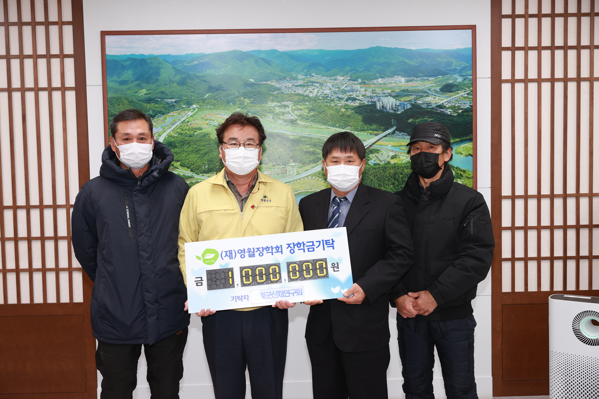 [강원사회복지신문 홍기한 기자]=영월군산채연구회(회장 안봉찬)에서 지난 12월 30일 영월지역 인재육성을 위해 장학금으로 쓰이길 바란다며 1백만원을 재단법인 영월장학회(이사장 최명서)에 기탁하였다.