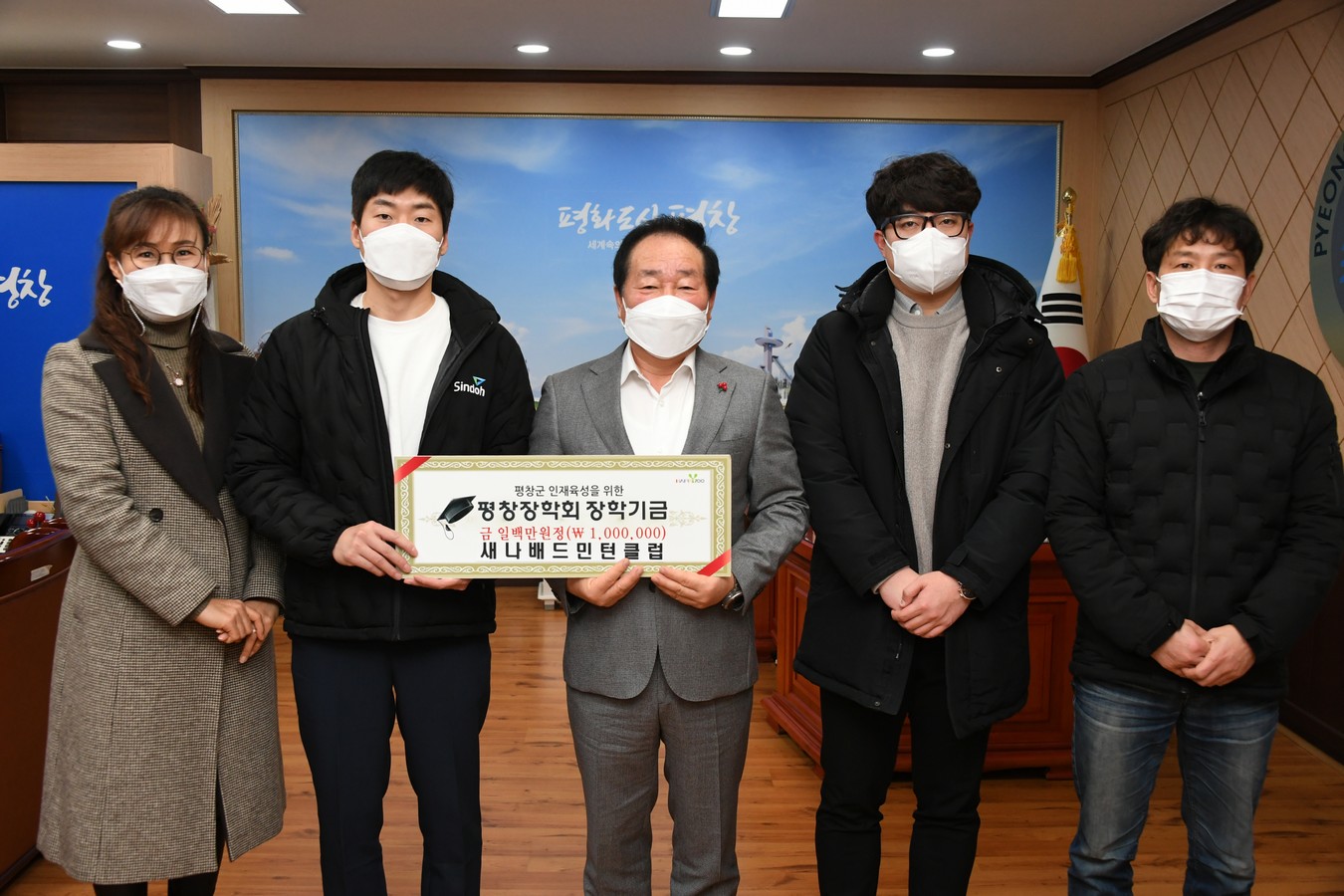 [강원사회복지신문 서은진 기자]=평창군청에서 새나배드민턴클럽(회장 정진욱)이 지난 12월 16일 1백만원, 송정농장(대표 이윤구)이 평창장학회에 장학금 3백만 원을 기탁하였다. 정진욱 회장은 "회원들이 공공체육시설에서 운동하며 건강이 증진되고 삶의 활력을 느끼고 있다."며, "이에 대한 고마움을 지역 인재들을 위한 ...