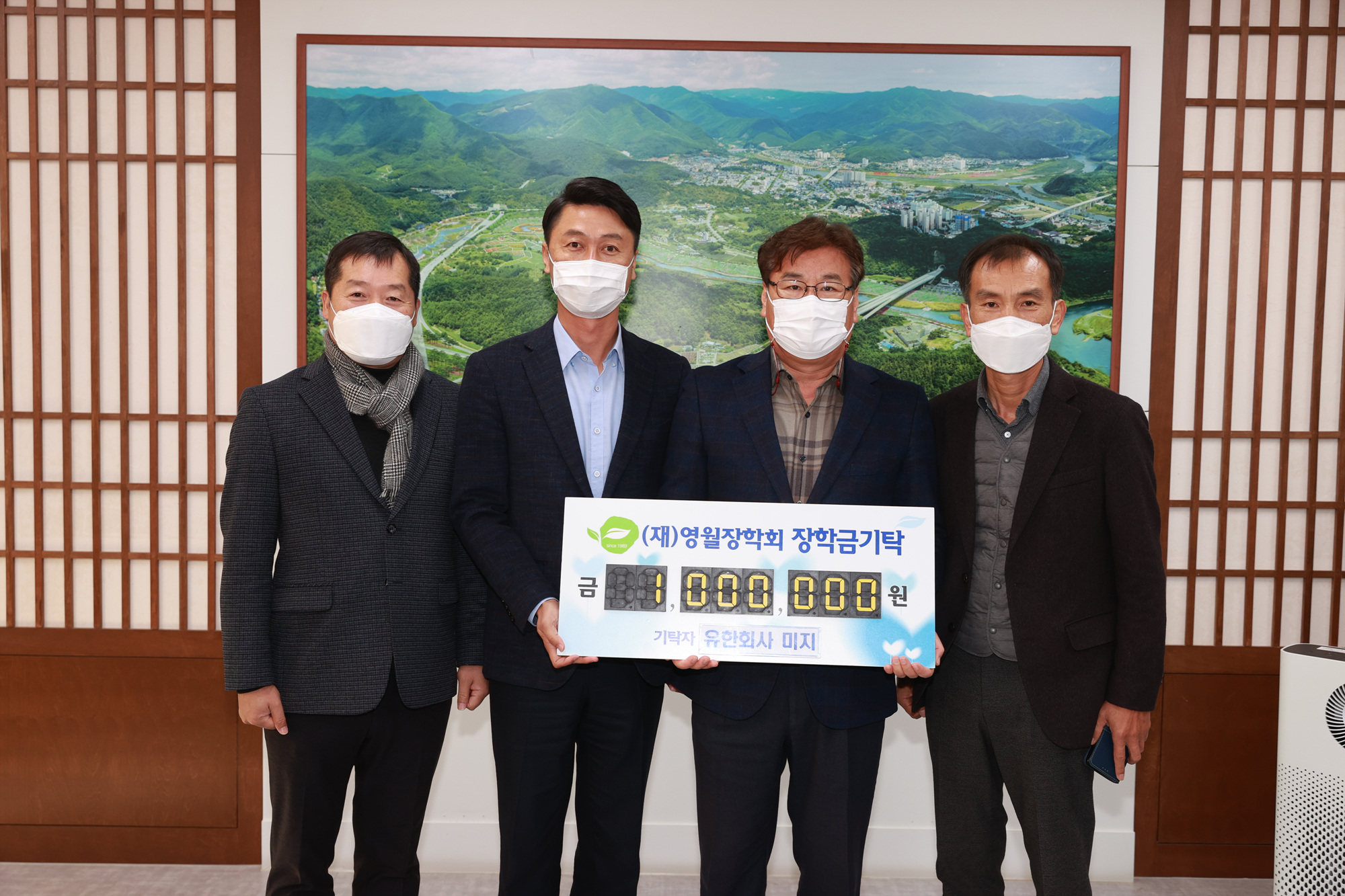 [강원사회복지신문 이정환 기자]=유한회사 미지(대표 이창열)는 지난 12월 1일 영월지역 인재육성을 위해 장학금으로 쓰이길 바란다며 1백만원을 재단법인 영월장학회(이사장 최명서)에 기탁하였다.