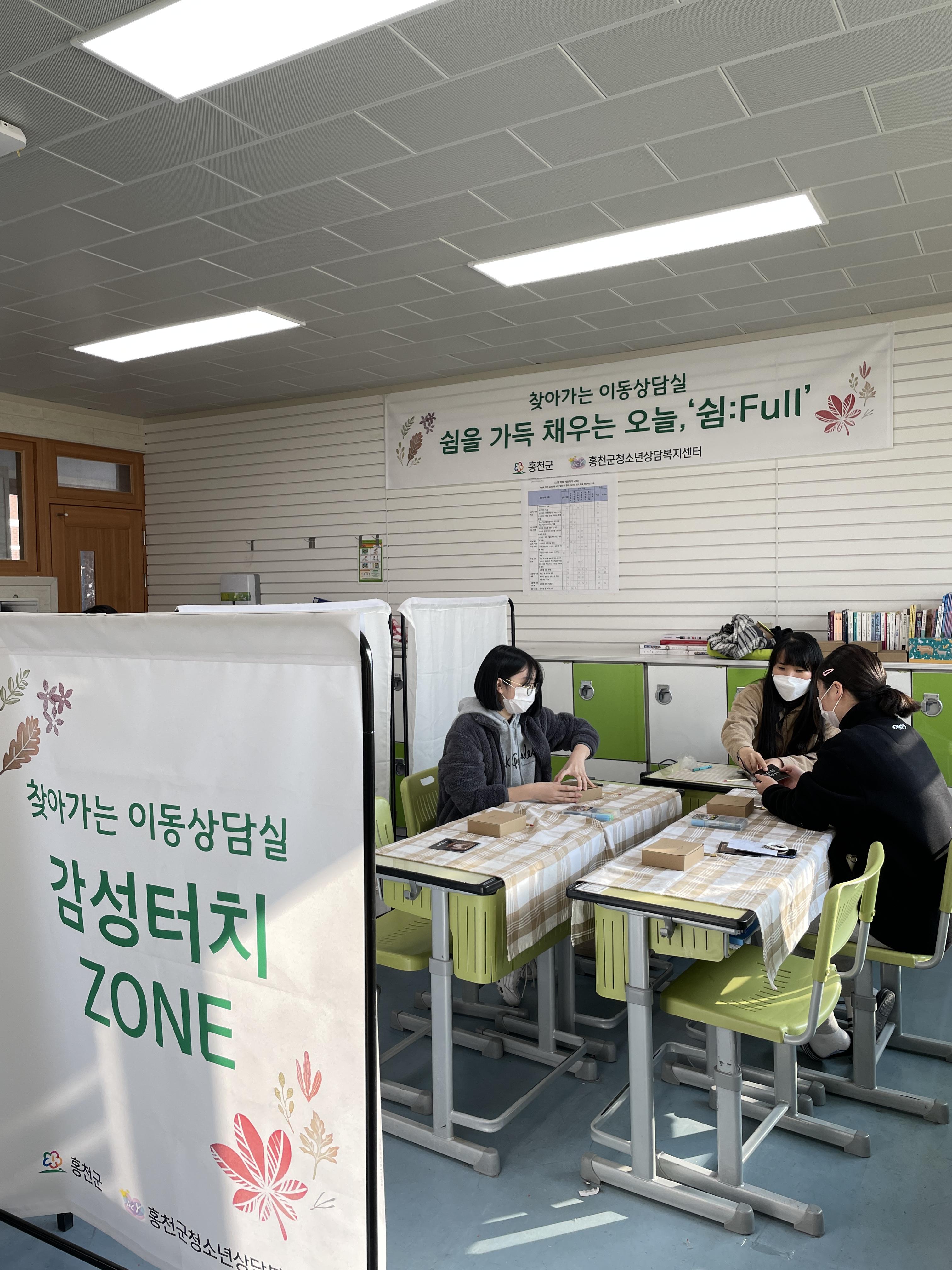 [강원사회복지신문 홍기한 기자]=홍천군청소년상담복지센터(센터장:허 일)는 지난 11월 16일(화) 오전 9시부터 11시 50분까지, 홍천군 남면에 위치한 양덕중학교에서 전교생을 대상으로 면단위 청소년들을 위한 찾아가는 이동상담실 '쉼을 가득 채우는 오늘, 쉼:Full'을 진행했다. 이날 양덕중학교 새작들 축제와 연계하여 청...