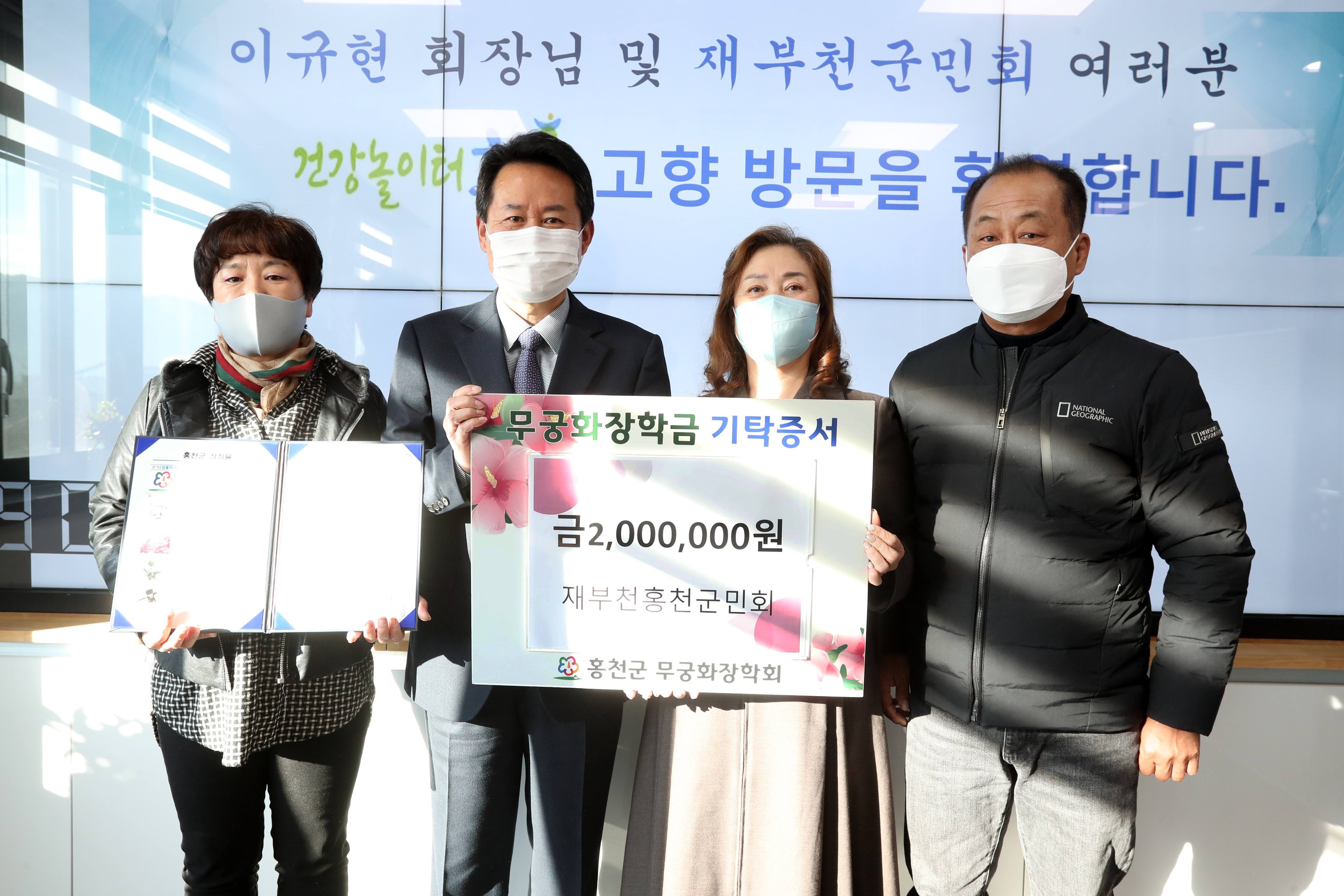 [강원사회복지신문 서은진 기자]=재부천홍천군민회(회장 이규현)는 지난 11월 11일 홍천군청을 방문, 무궁화장학금 200만원을 기탁했다.