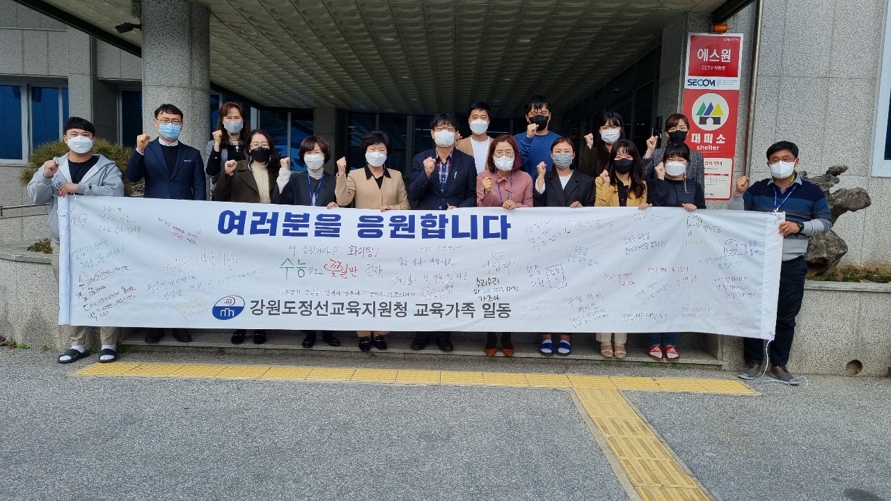 [강원사회복지신문 이정환 기자]=강원도정선교육지원청(교육장 김인숙)은 지난 11월 1일 대학수학능력시험을 앞둔 수험생을 격려하기 위하여 정선고등학교를 방문하였다. 김인숙 교육장은 정선고등학교 3학년 학생과 교직원에게 코로나19라는 악조건 속에서도 수험 생활을 이어가고 있는 수험생들을 응원하며 정선교육지원청...