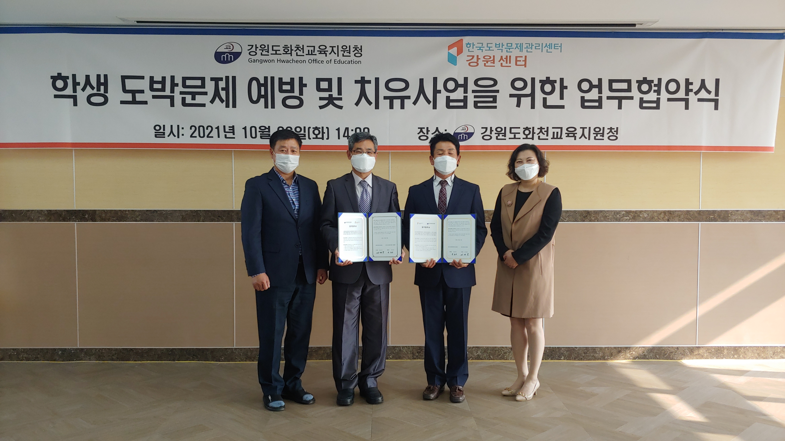 [강원사회복지신문 이정환 기자]=강원도화천교육지원청(교육장 김성호)은 지난 10월 26일(화) 한국도박문제관리센터 강원센터(센터장 장효강)와 학생 도박 중독 예방과 회복·치유 지원을 위한 업무협약을 했다. 한국도박문제관리센터는 학생 도박문제 예방과 치유·재활사업을 수행하는 공공기관이다. 이번 업무협약으로 양...