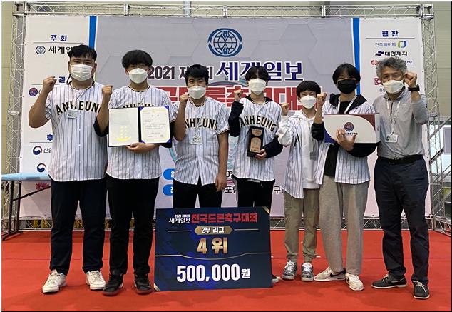 [강원사회복지신문 이정환 기자]=2부리그 승격 첫 대회 입상 안흥중학교(교장 손영관) 드론축구단 에드립은 지난 10월 10일(토), 경북 포항에서 펼쳐진 2021 제4회 세계일보배 전국드론축구대회에 참가해 4위에 입상했다. 지난 7월 2021 영덕 풋볼트립 전국드론축구대회 3부리그 2위 입상으로 창단 3년 만에 2부리그로 승격된...