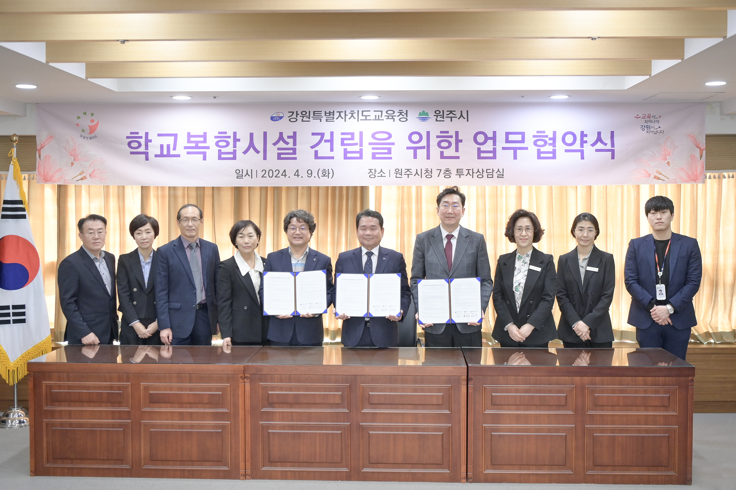 원주교육지원청 청사 이전 ‘청신호’ 원주시는 지난 4월 9일, 시청 7층 투자상담실에서 강원특별자치도교육청(교육감 신경호), 원주교육지원청(교육장 주영일)과 ‘원주교육지원청 현부지 활용을 위한 학교복합시설 사업’ 추진을 위한 업무 협약을 체결했다. 학교복합시설은 학교와 지역주민이 함께 사용할 수 있는 교육·...
