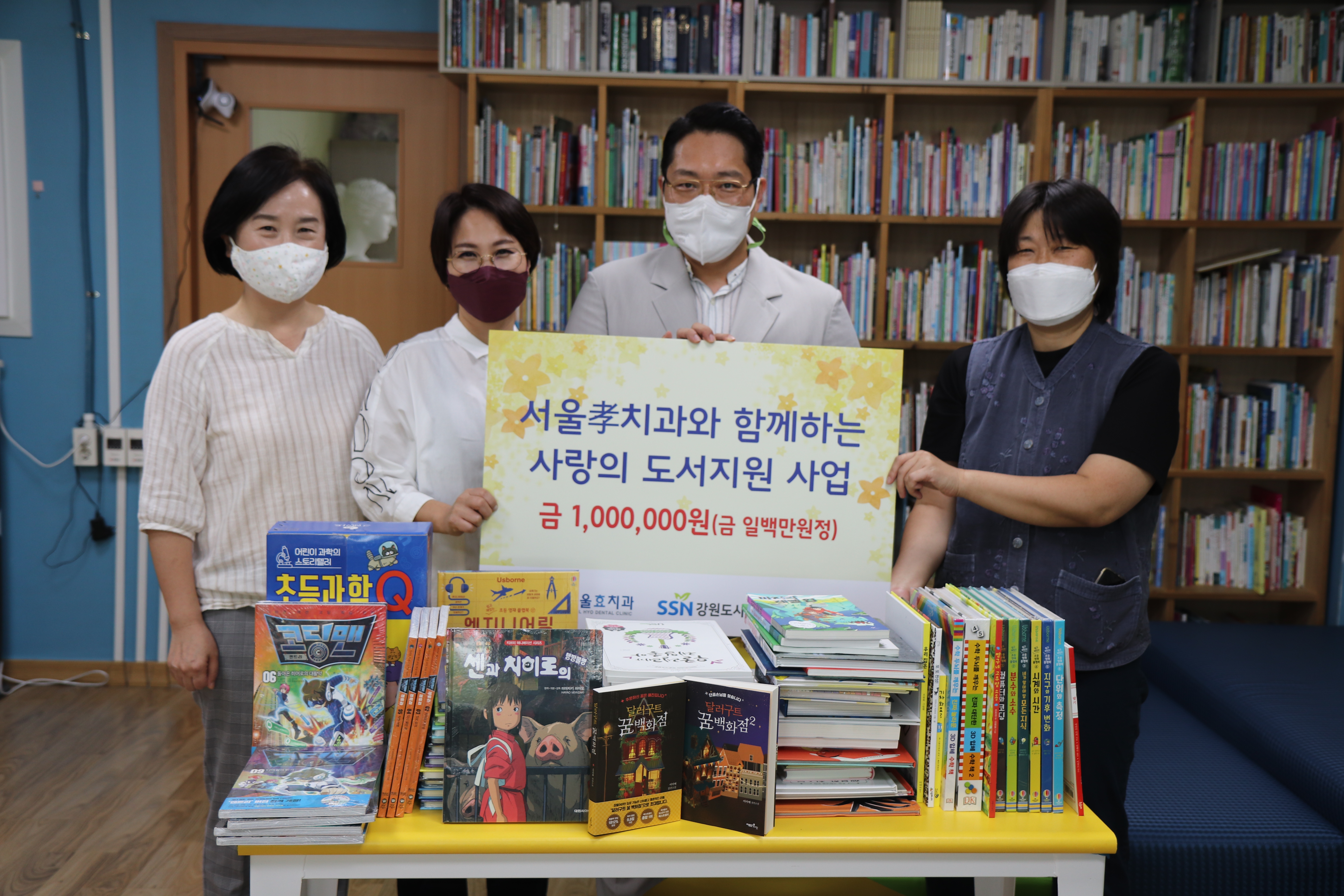[강원사회복지신문 유경수 기자]=서울효치과(원장 김정훈)는 지난 9월 14일 10:30 춘천깨비지역아동센터에서 강원도사회공헌정보센터(센터장 홍기종)를 통해 아동용 도서 60권(1,000,000원 상당)을 기탁하였다. 이번 아동용 도서 지원사업은 서울효치과에서 '의료용 폐금 나눔캠페인'을 통해 조성된 기금으로 마련되었으며, ...