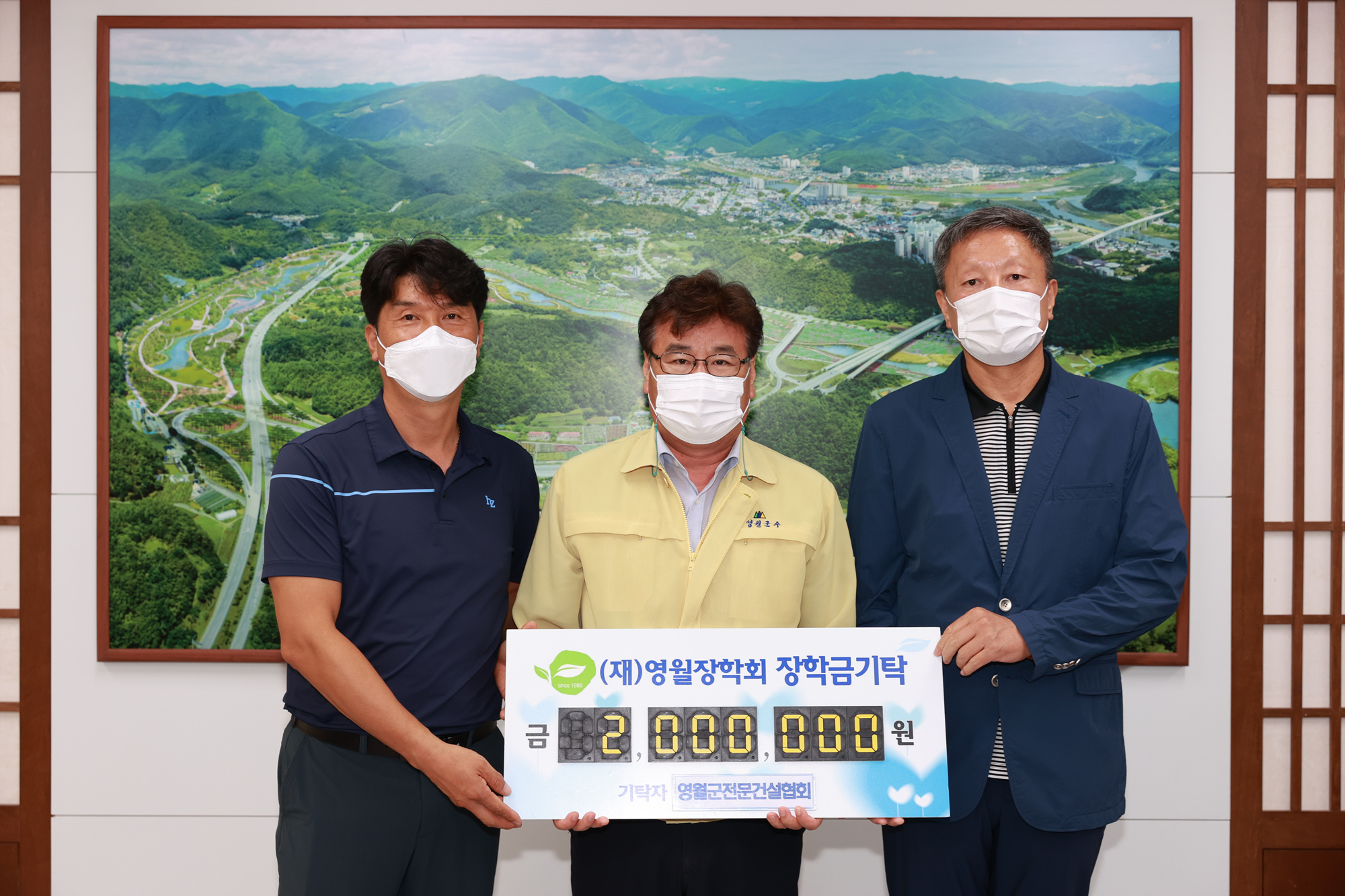 [강원사회복지신문 이정환 기자]=영월군전문건설협회(회장 금동화, 사무국장 민복기)는 지난 8월 13일 영월지역 인재육성을 위해 장학금으로 쓰이길 바란다며 2백만원을 재단법인 영월장학회(이사장 최명서)에 기탁하였다.